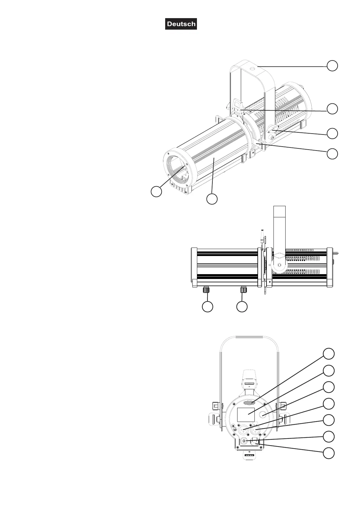 Geräteansicht beschreibt exemplarisch Artikel Nr. 40001731, LED PFE-60 RGBW Profile Spot 9-25°