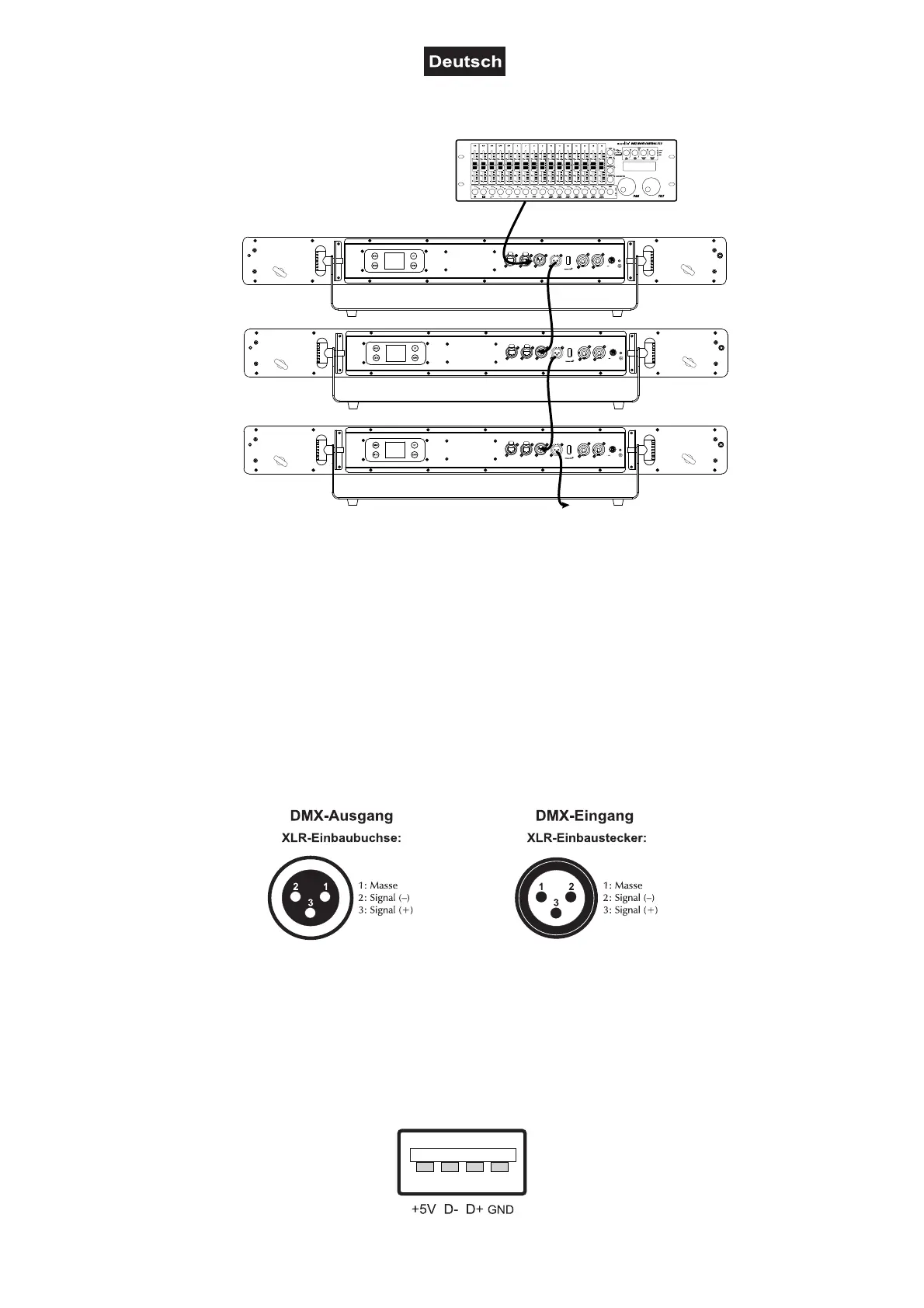 4 Ab einer Kabellänge von 300 m oder nach 32 angeschlossenen DMX-Geräten sollte das Signal mit Hilfe