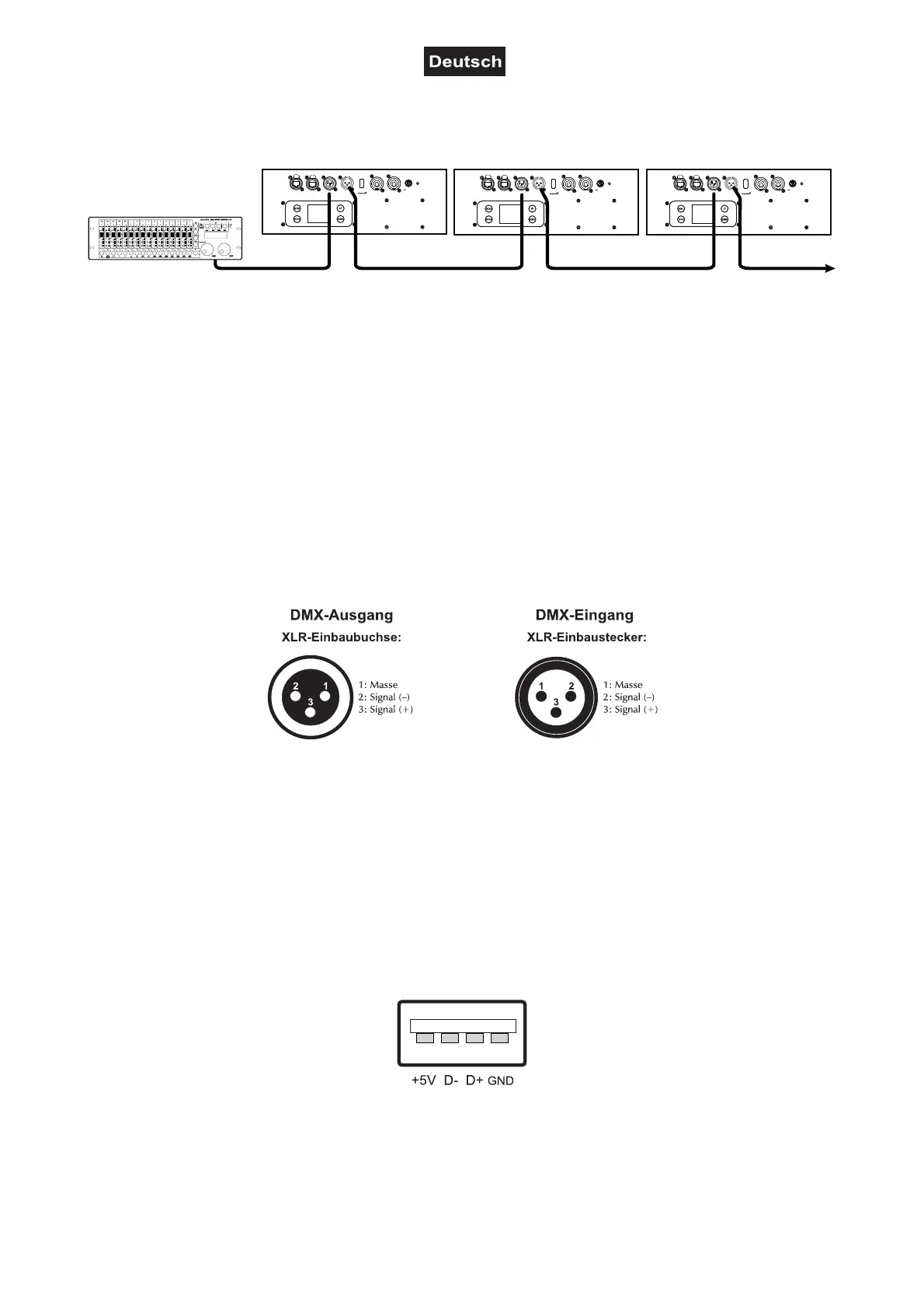4 Ab einer Kabellänge von 300 m oder nach 32 angeschlossenen DMX-Geräten sollte das Signal mit Hilfe