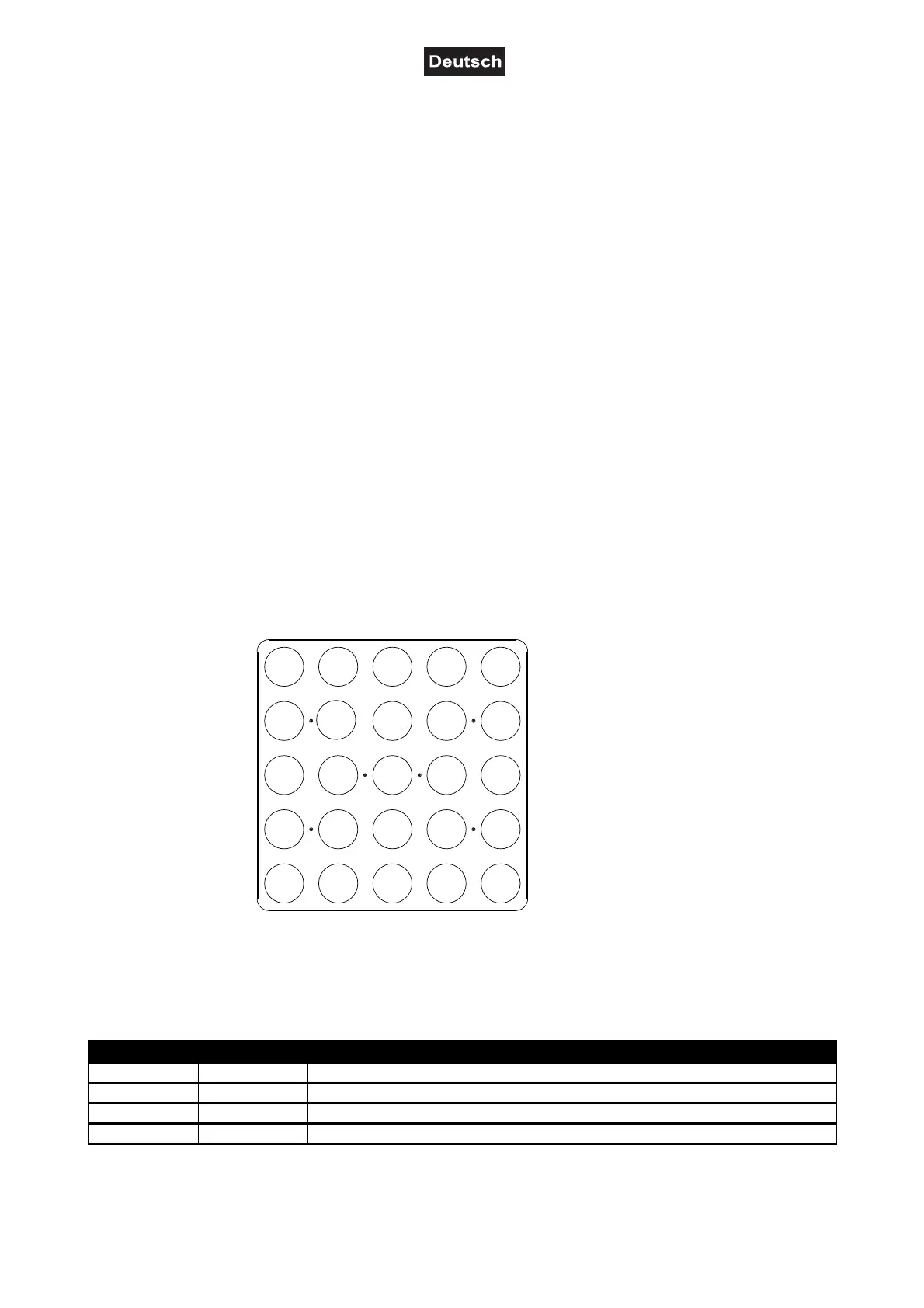 Das Gerät ist in 25 LEDs mit jeweils RGB/WW aufgeteilt, die mit dem folgenden DMX-Protokoll individuell