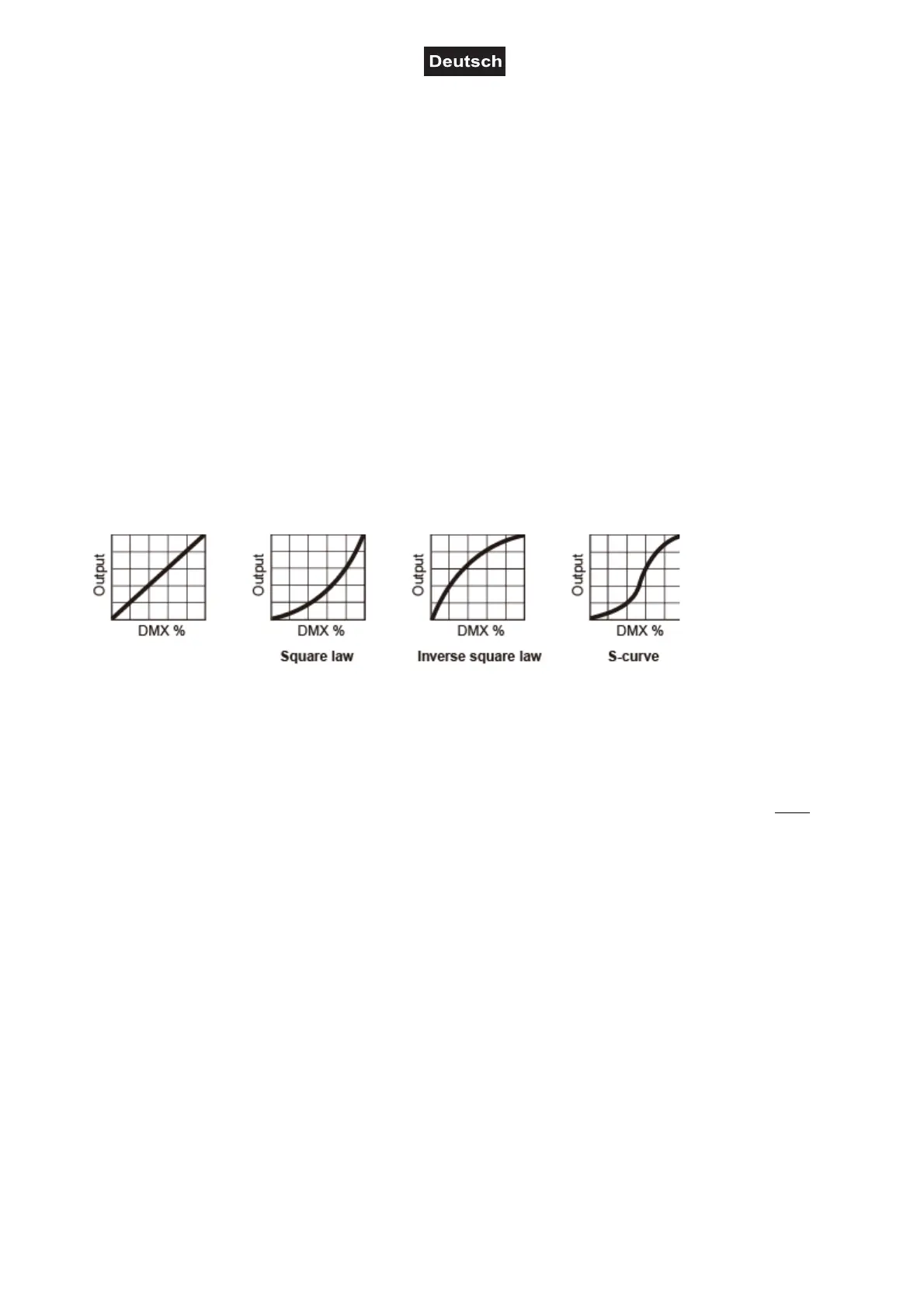 S-CURVE: Die Helligkeit steigt S-förmig mit dem DMX-Wert.