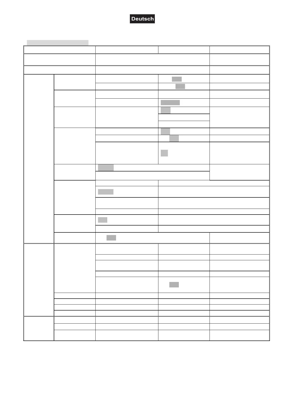 Vorgabewerte grau unterlegt.