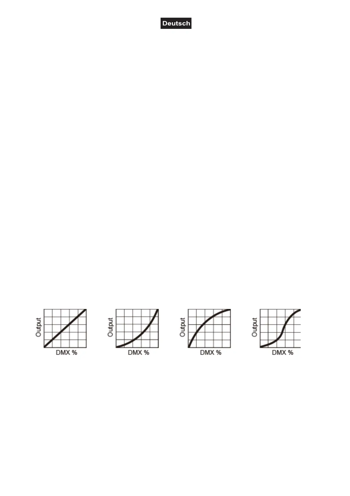 SCURVE: Die Helligkeit steigt S-förmig mit dem DMX-Wert.