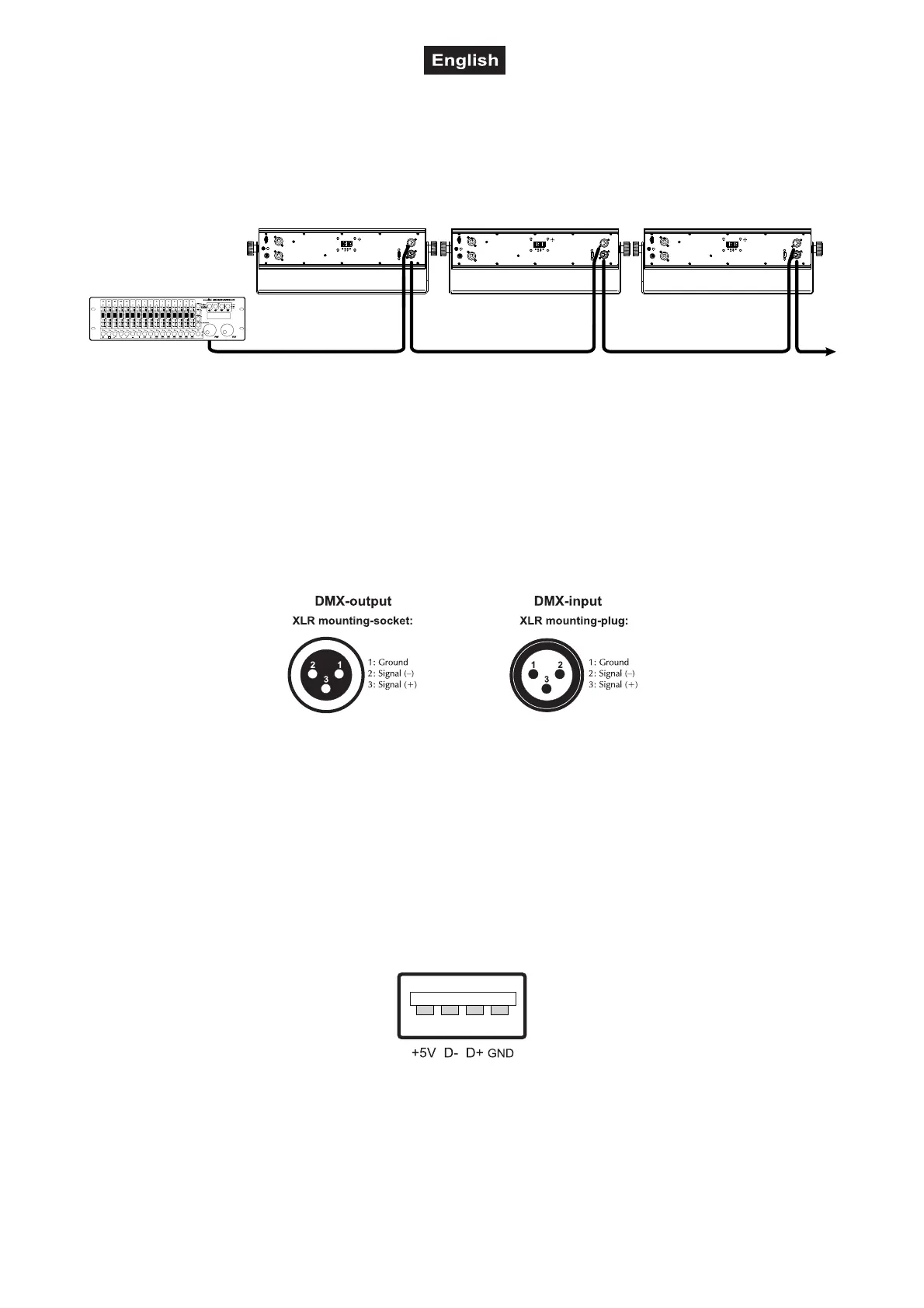 A DMX512 data link is required in order to control the device via DMX. The device provides 3-pin XLR
