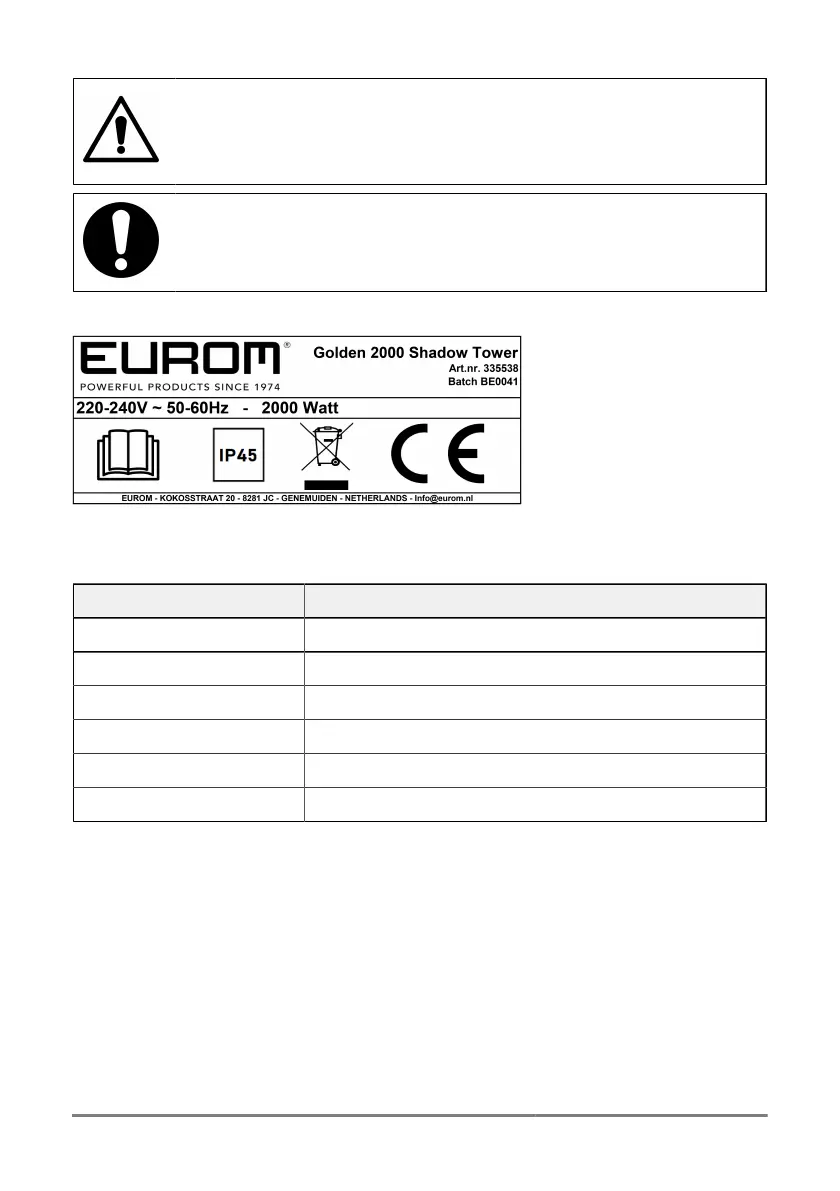 Bekijk gratis de handleiding van Eurom Golden 2000 Shadow Tower, stel vragen en lees de antwoorden op veelvoorkomende problemen, of gebruik onze assistent om sneller informatie in de handleiding te vinden of uitleg te krijgen over specifieke functies.