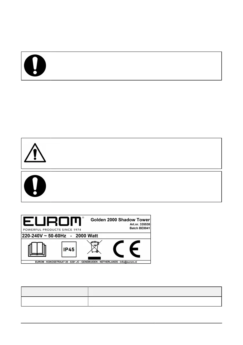 Bekijk gratis de handleiding van Eurom Golden 2000 Shadow Tower, stel vragen en lees de antwoorden op veelvoorkomende problemen, of gebruik onze assistent om sneller informatie in de handleiding te vinden of uitleg te krijgen over specifieke functies.