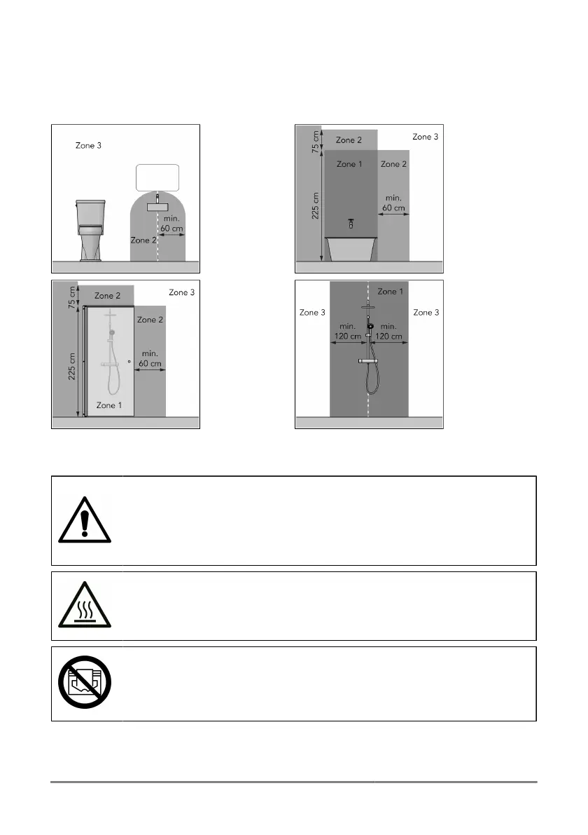 • in zone 3 of a toilet room or bathroom with a bath, shower with screen or shower without