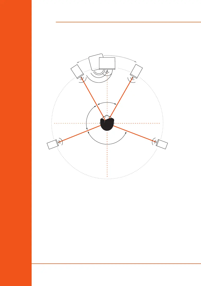The rear satellites should form an isosceles triangle with the listening