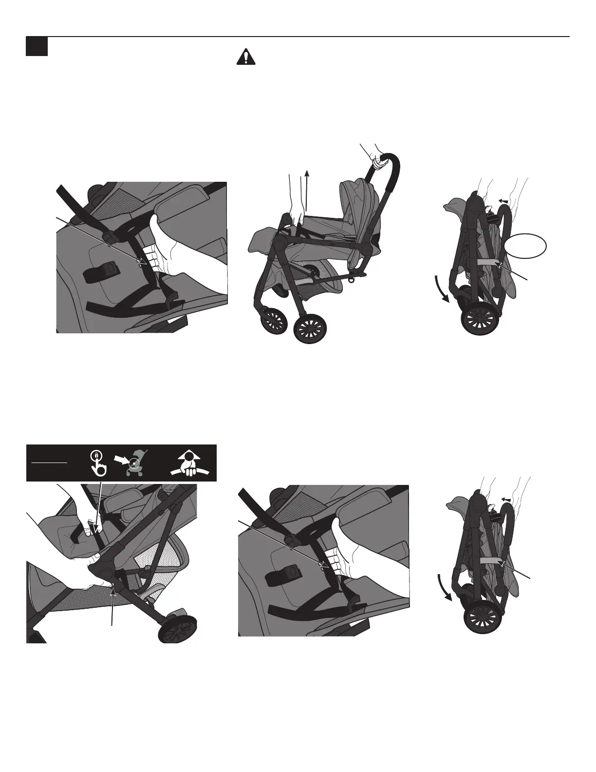 Care must be taken when folding or unfolding stroller to prevent finger injury to you or your child in hinge areas.