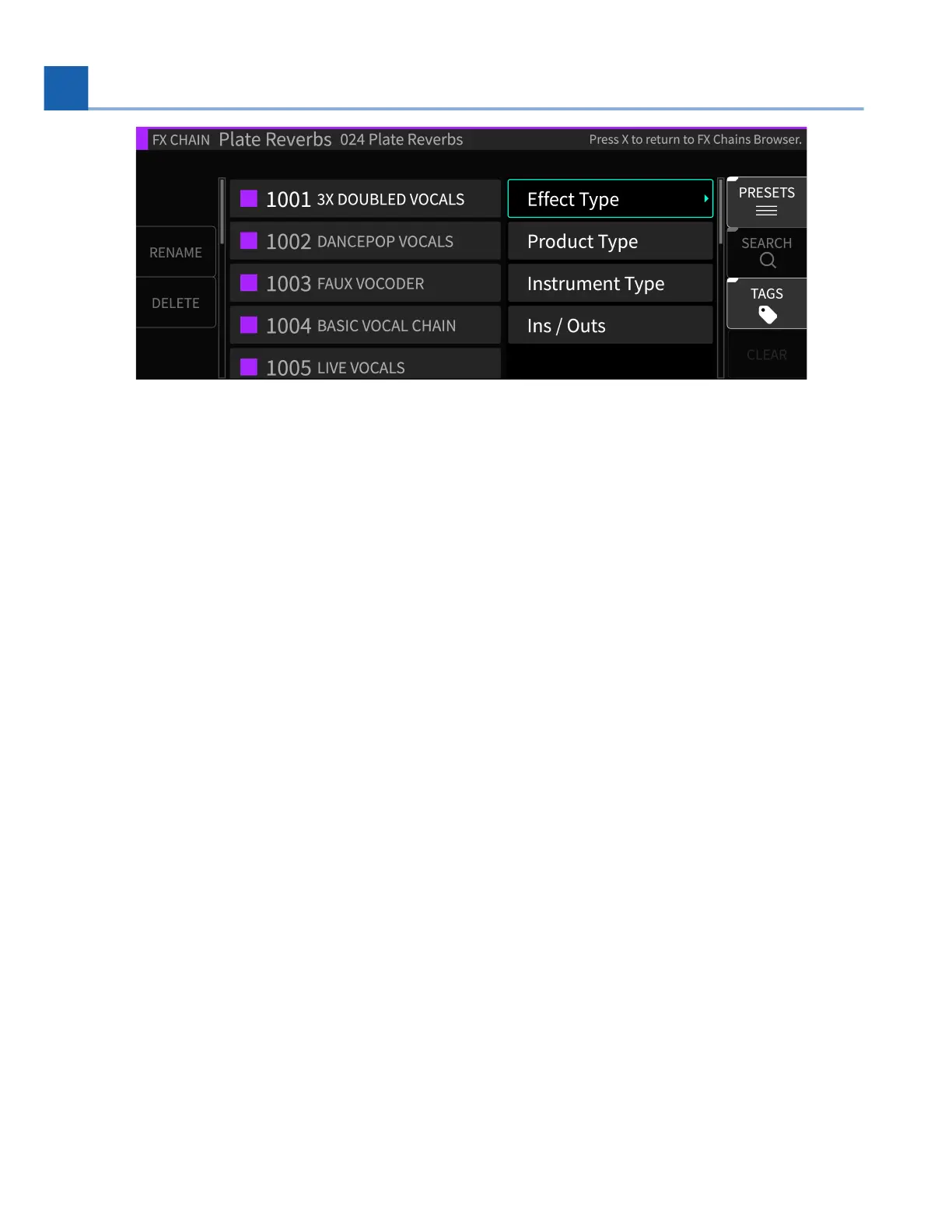 Clear: Press the Clear so key to clear all currently loaded tags and return the main list of FX chains to its
