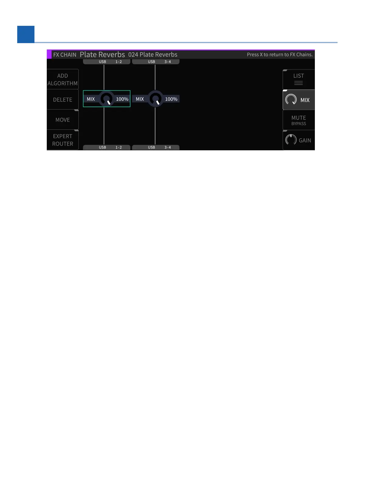 of each algorithm within the FX chain. The difference between the Gain control and Mix control is that