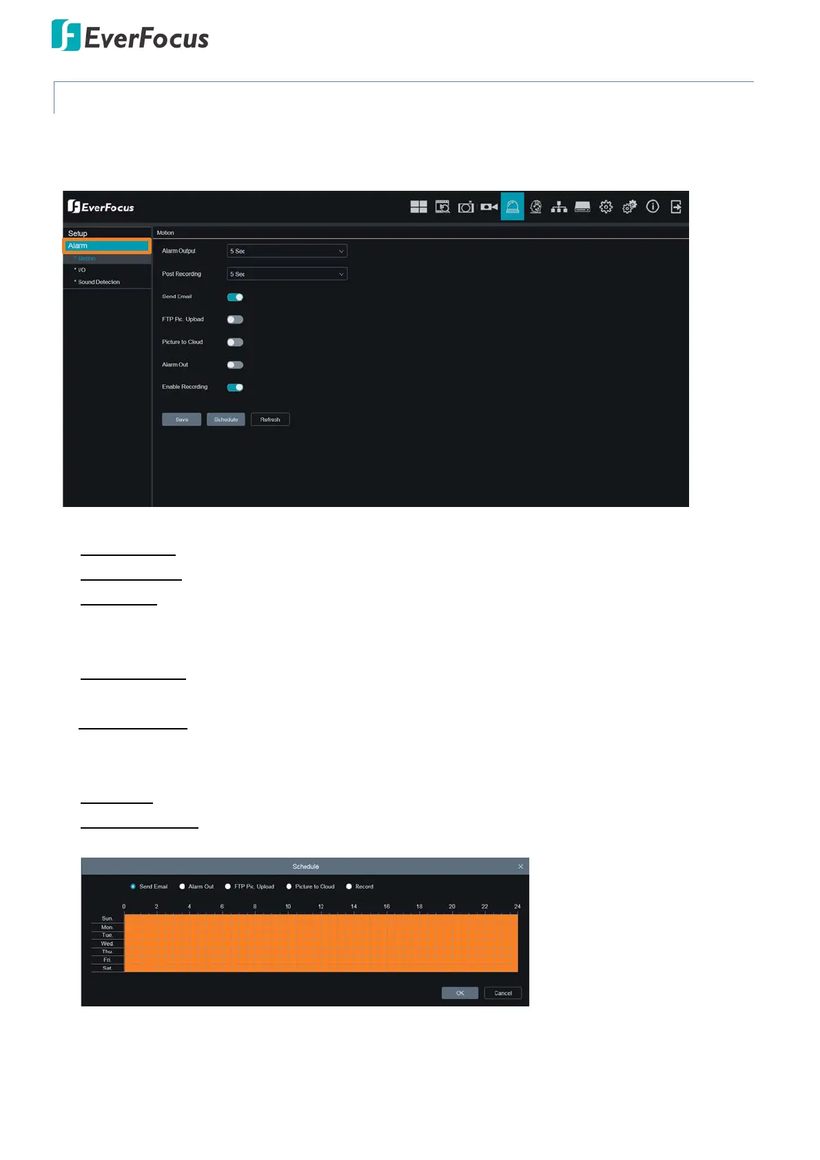 FTP Pic. Upload: When an event is triggered, the system will upload alarm images to FTP server. Note