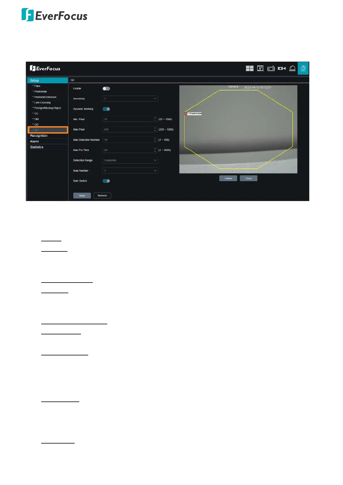 - Full Screen: The detection area is the camera all cover area.