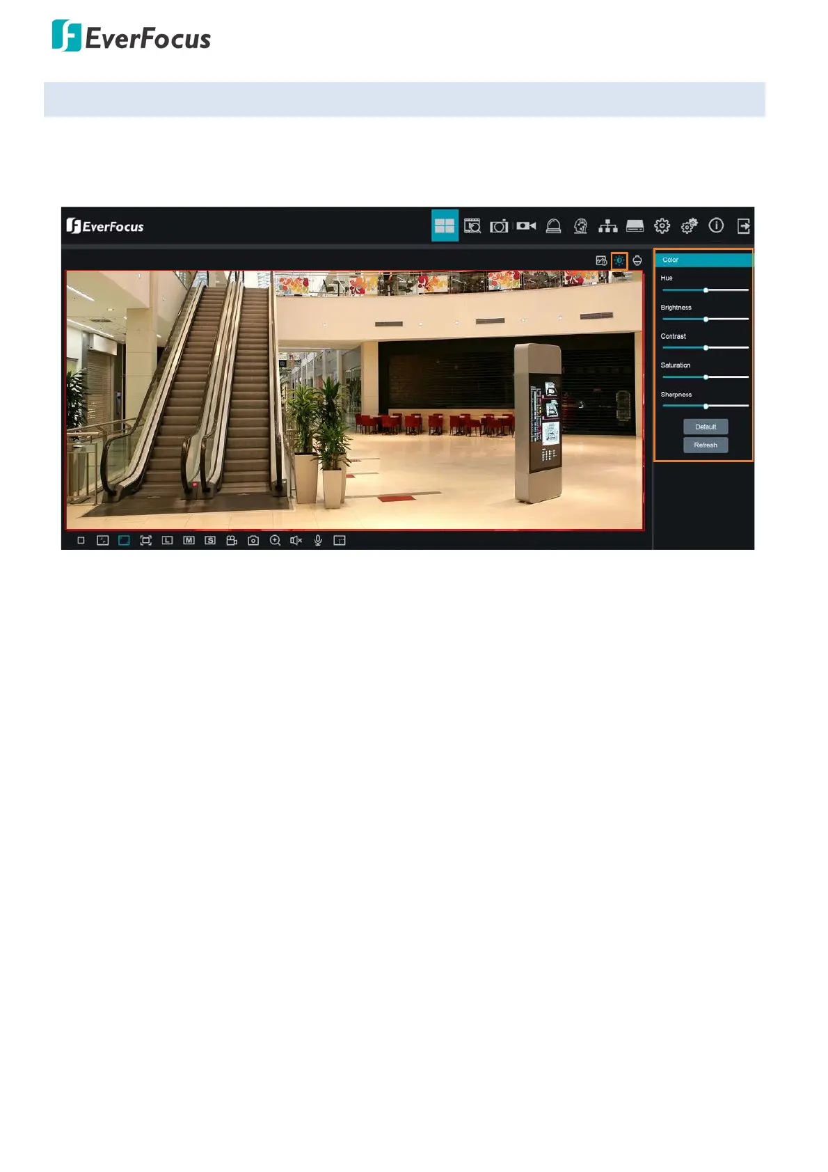 Default button to restore all the value to factory default. On the Live View window, click the Color button to