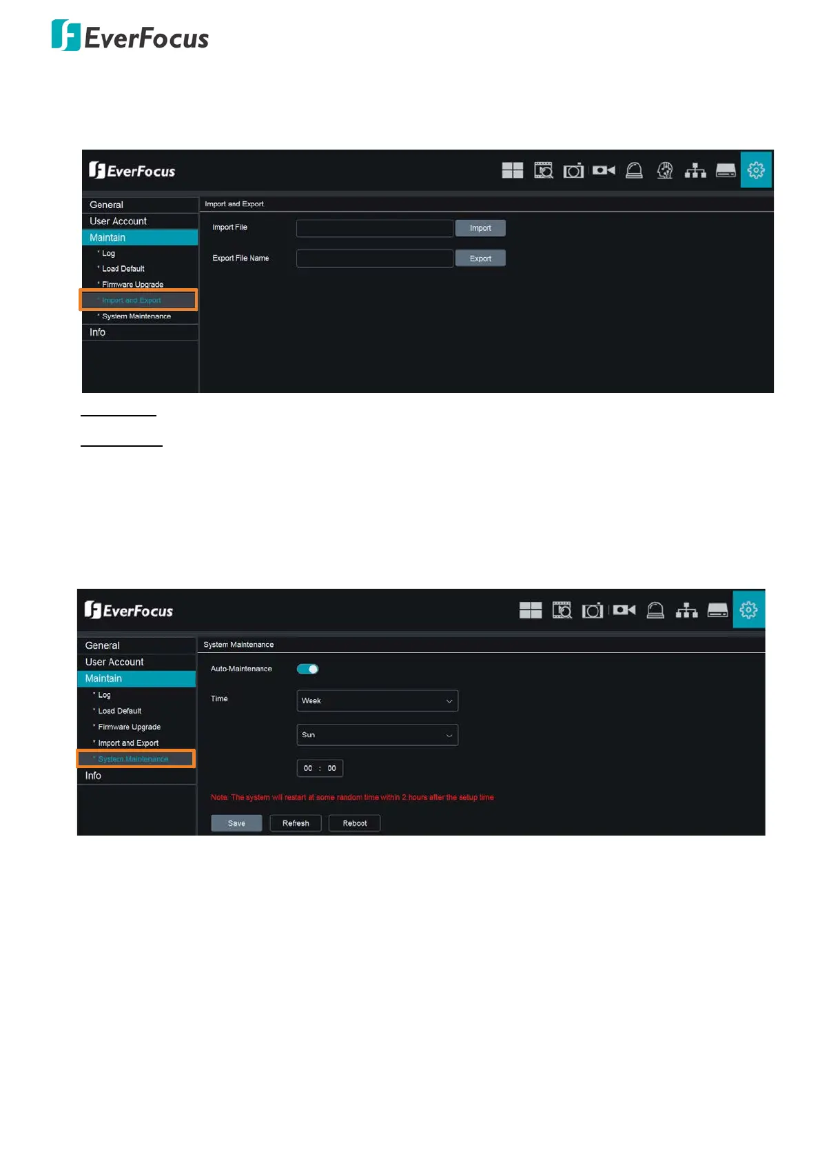 This menu allows the IP camera to auto reboot regularly. It is recommended to leave this function enabled,
