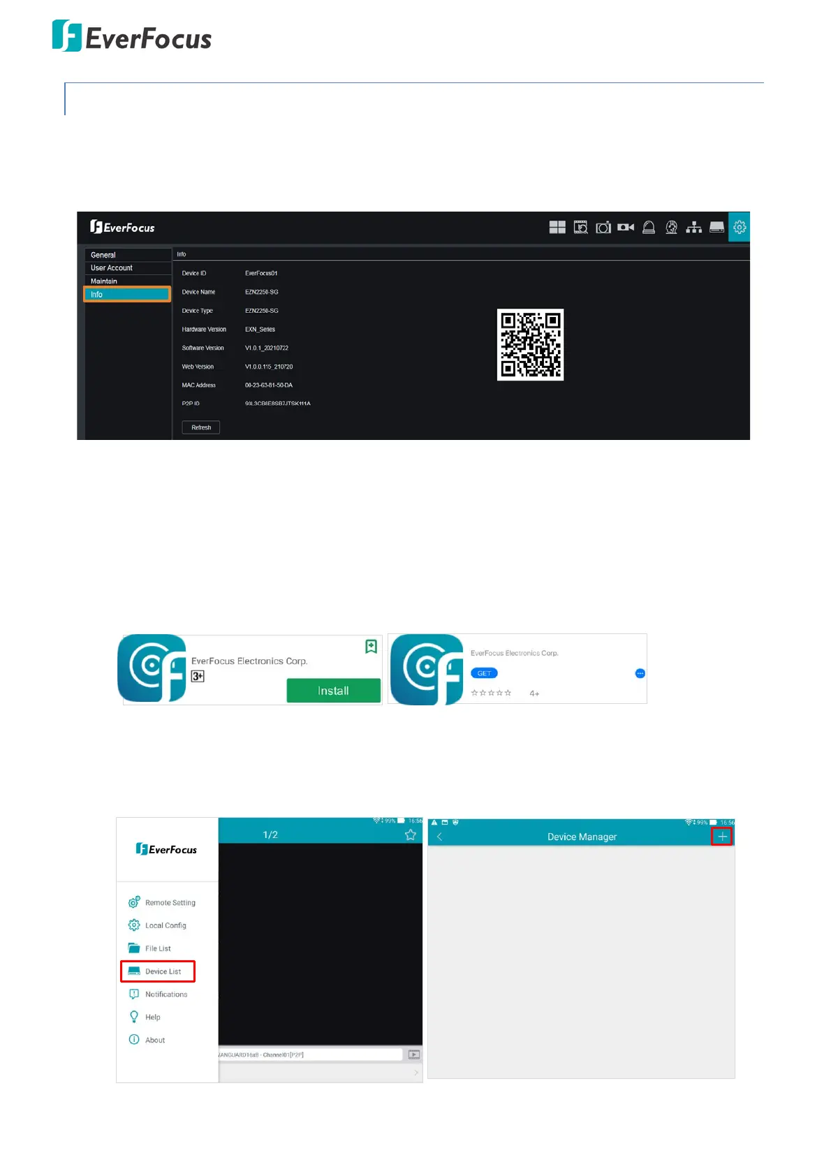 1. Install EverFocus eFVMS App. For Android users, go to Google Play Store. For iOS users, go to Apple