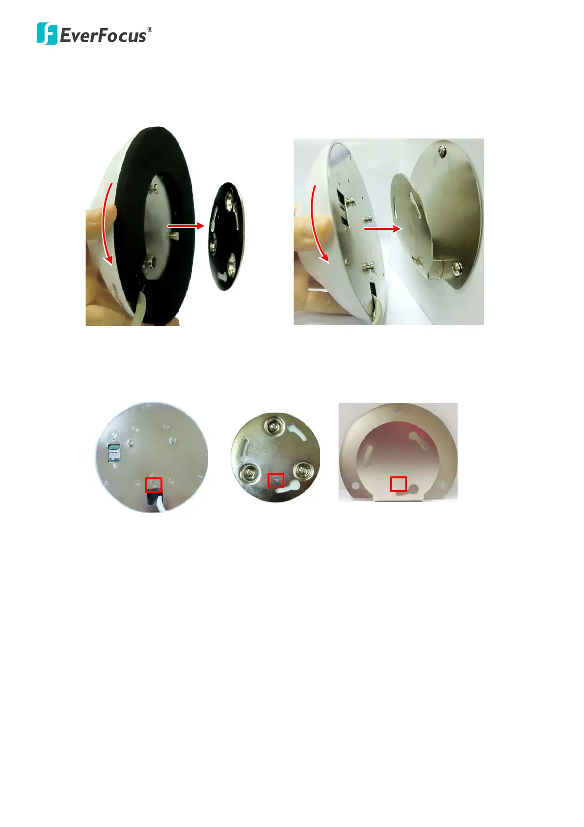 Bracket, attach the camera to the Base Plate / Tilting Wall Mount Bracket and then rotate clockwise