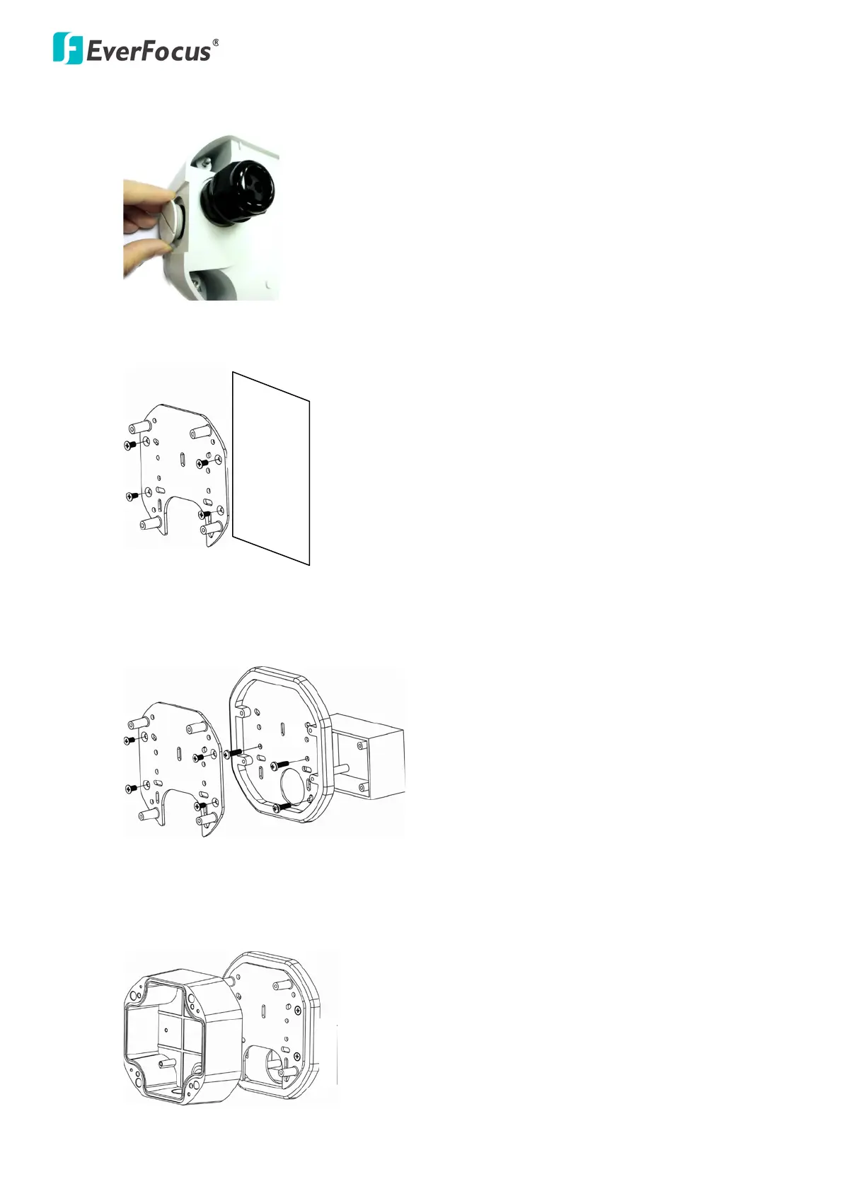 If you want to install the camera to a wiring box, you have to screw the Adapter Plate (optional)