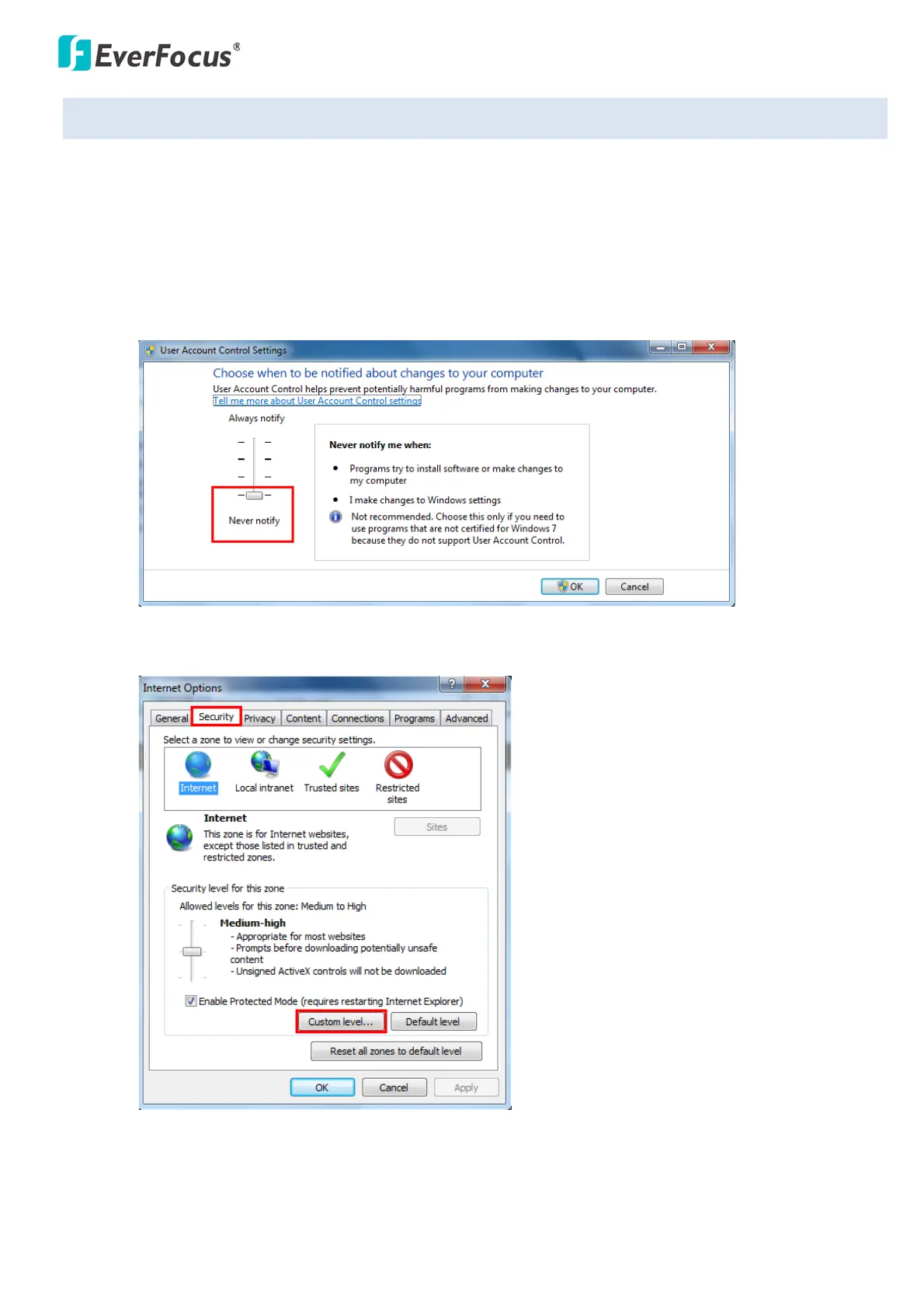 A. To enable Remote Live View, Firmware Upgrade and ActiveX Prompt on Internet Explorer, some