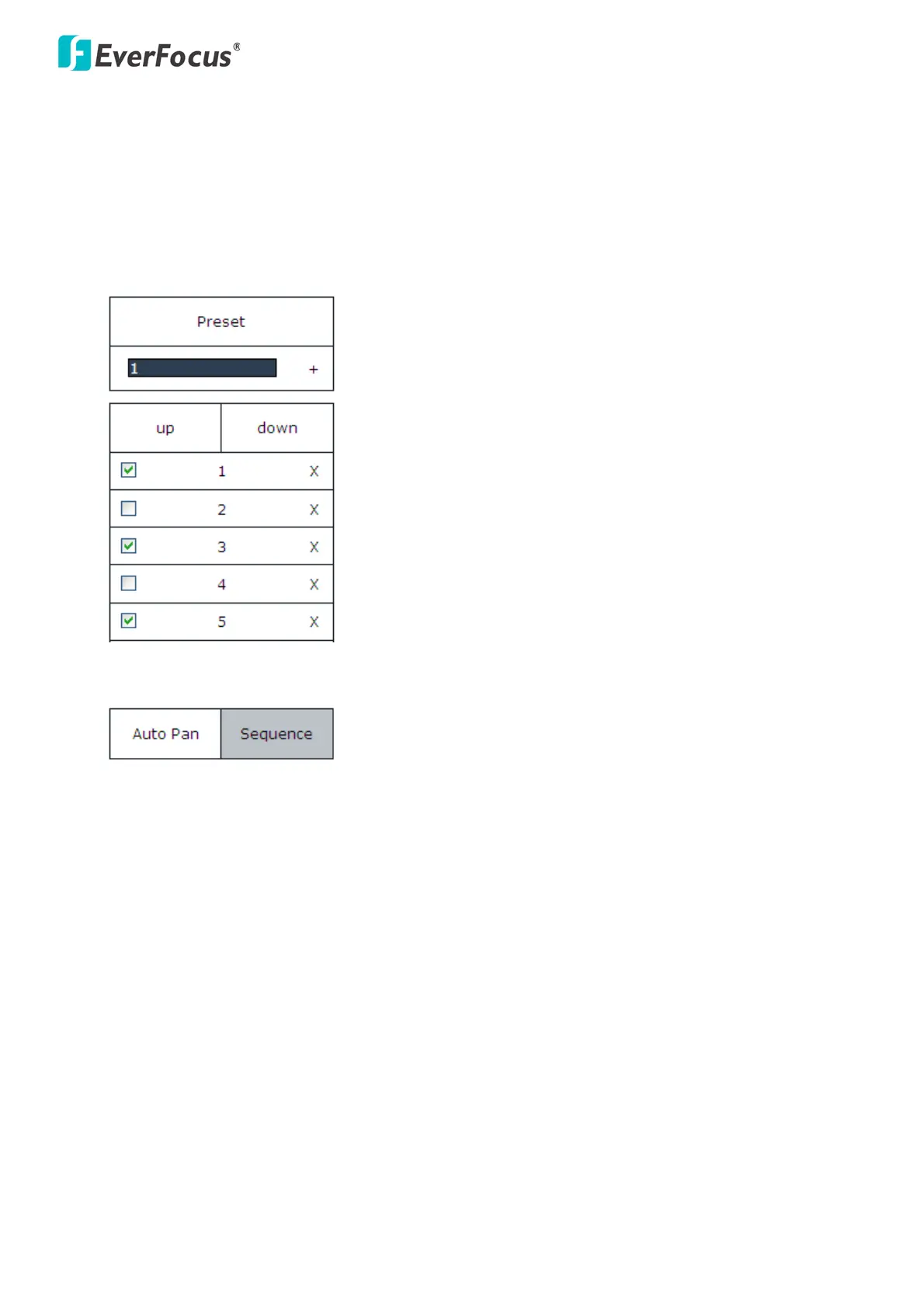 The camera can display the selected preset points in a sequence order. Each position is applied with a dwell