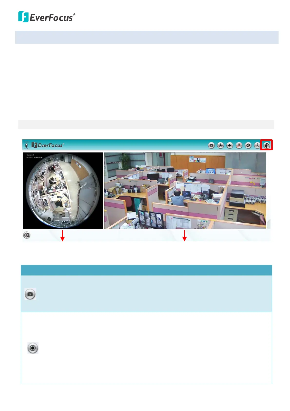 Recording: Click the Record button to start / stop recording the current fisheye video stream.