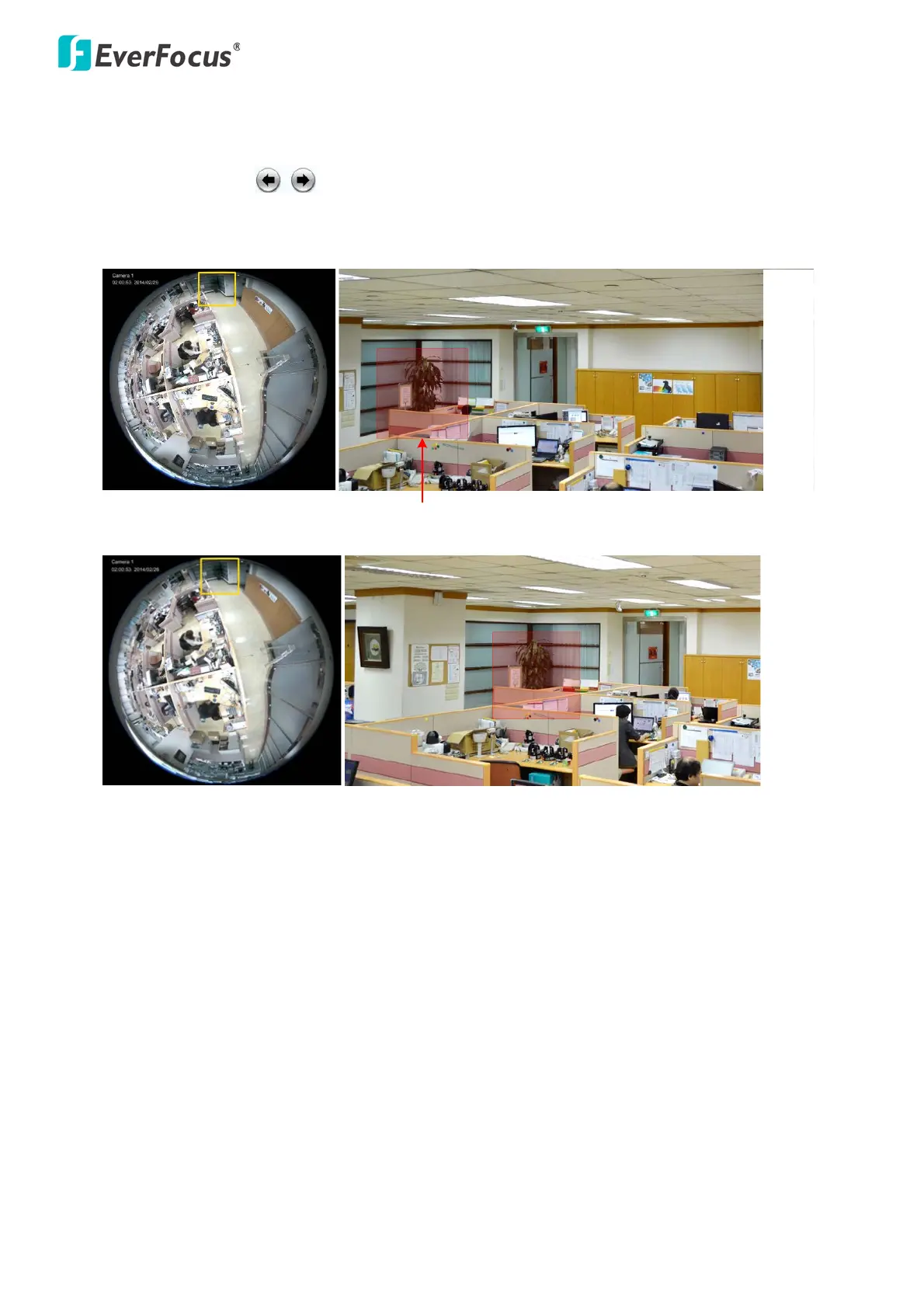 7. After clicking the Fine Adjustment button, an yellow square should appear on the fisheye window. On