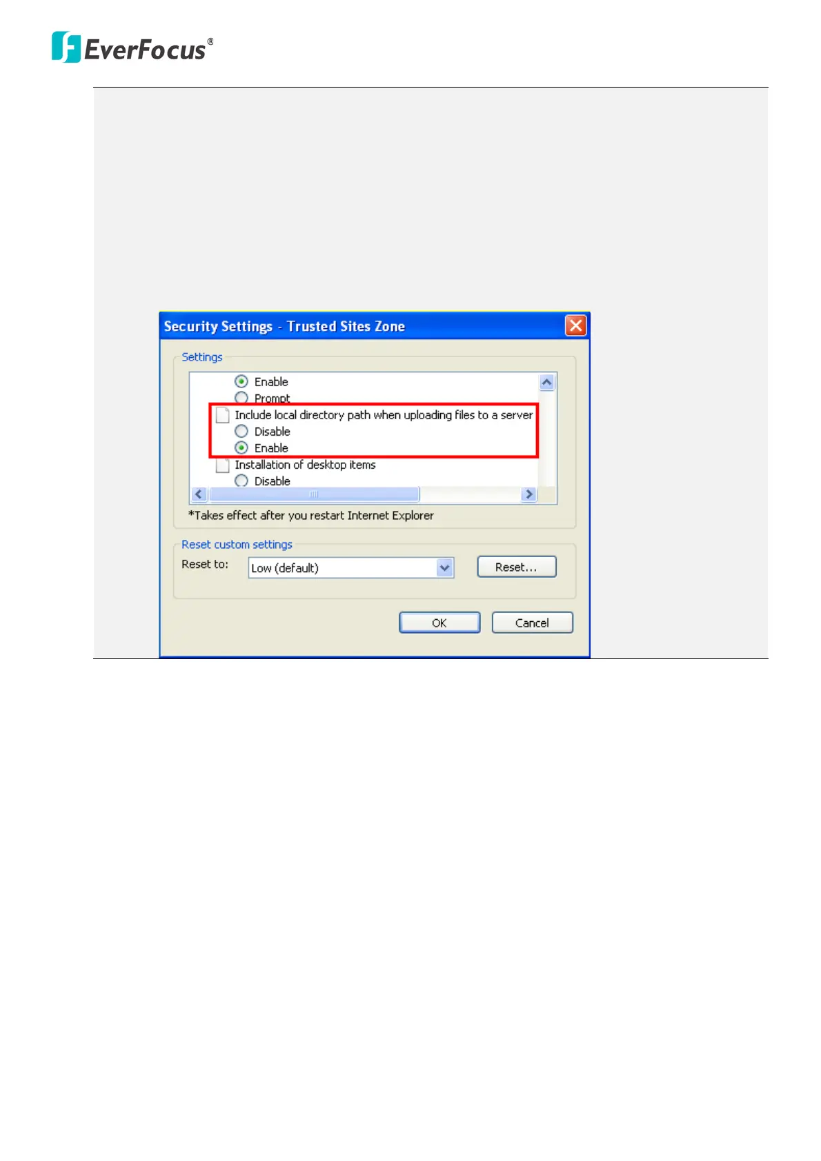 a. Go to Internet Explorer > Tools > Internet Option > Security > Custom.