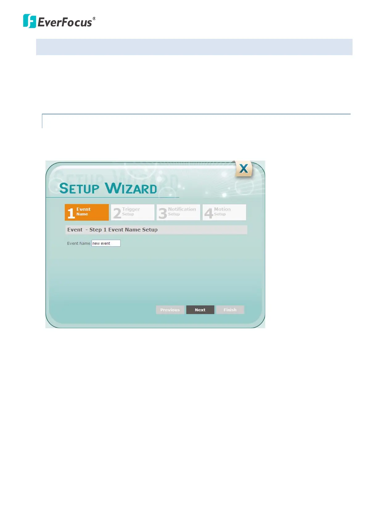 The Event Wizard allows users to easily configure the event settings. Follow the on-screen