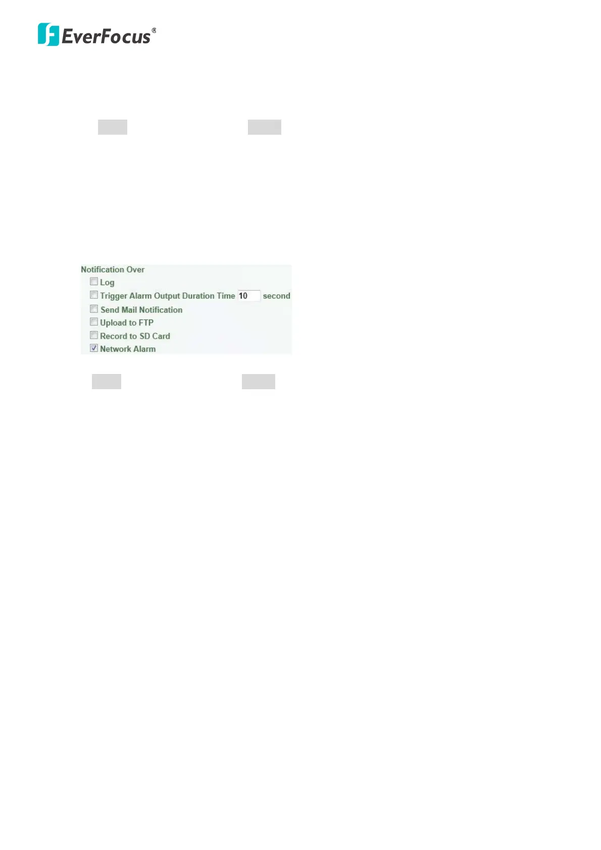 【Network Alarm Settings】This function works with EverFocus CMS software. The camera can send a