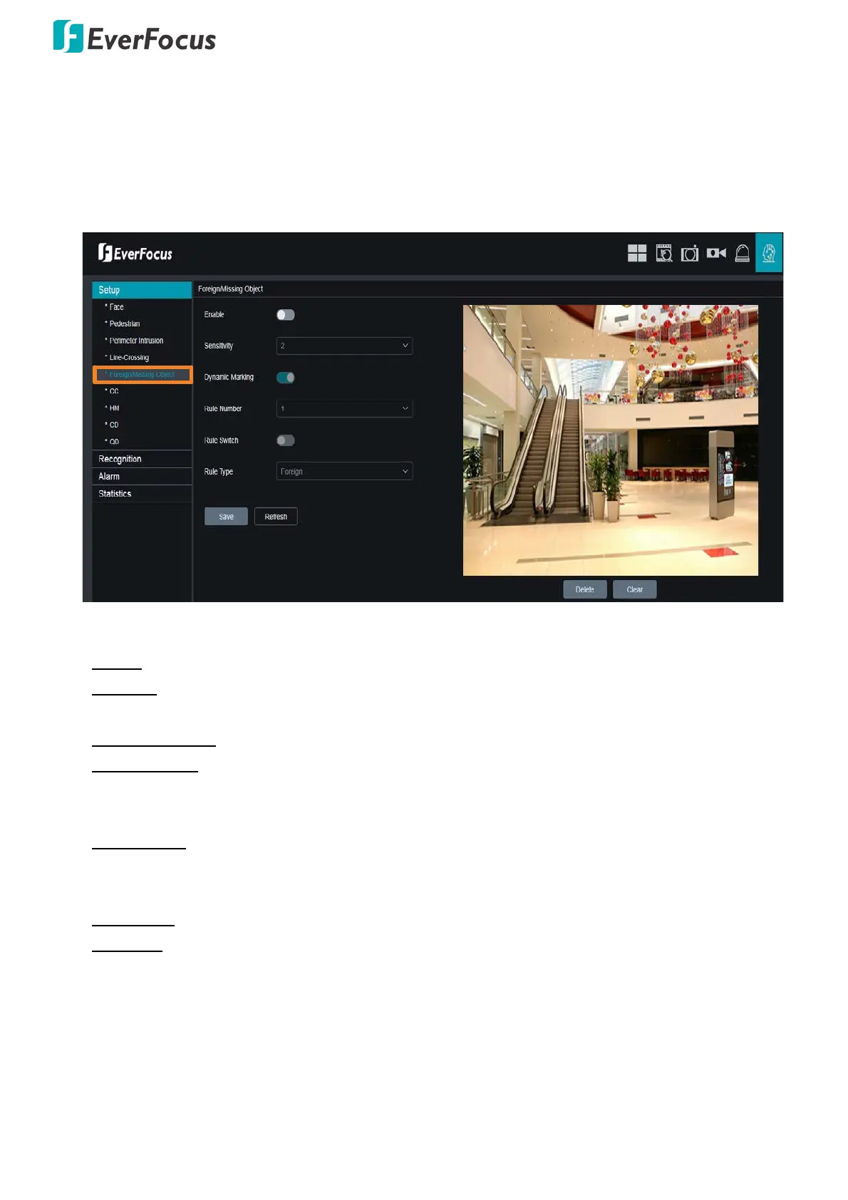 Rule Type: Foreign means system will only detect the unattended objects. Missing means system will