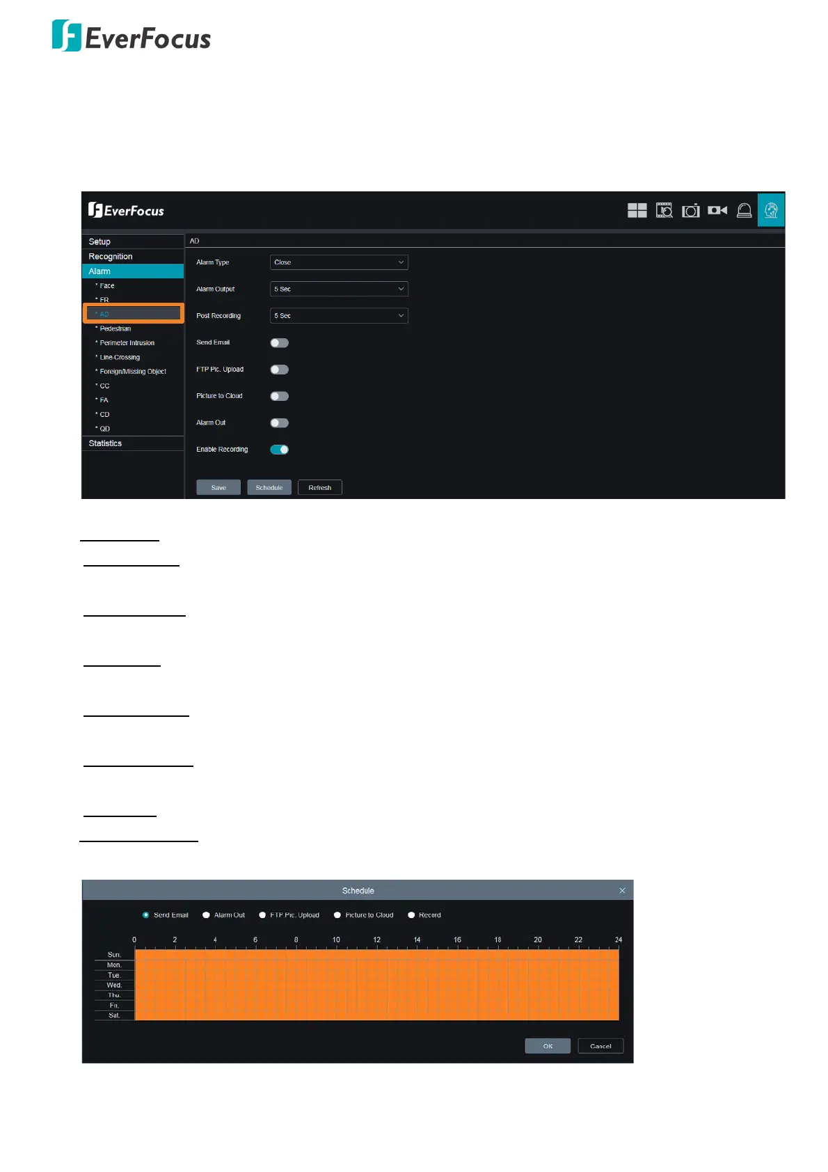 Enable Recording: Select to record. To further configure recording schedule, click the Schedule button to