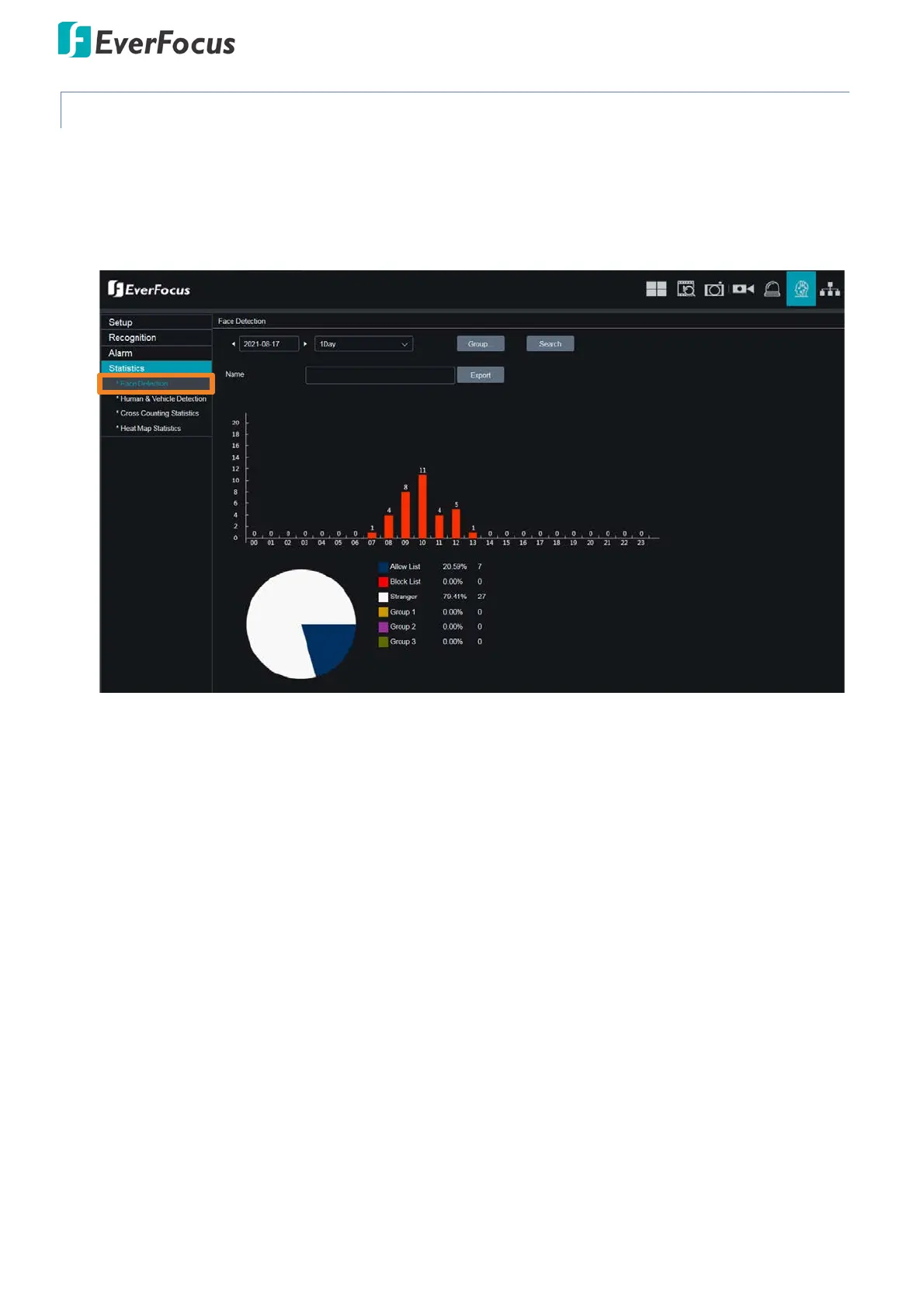 After setting up the Recognition function, you can view the statistic reports using this page.