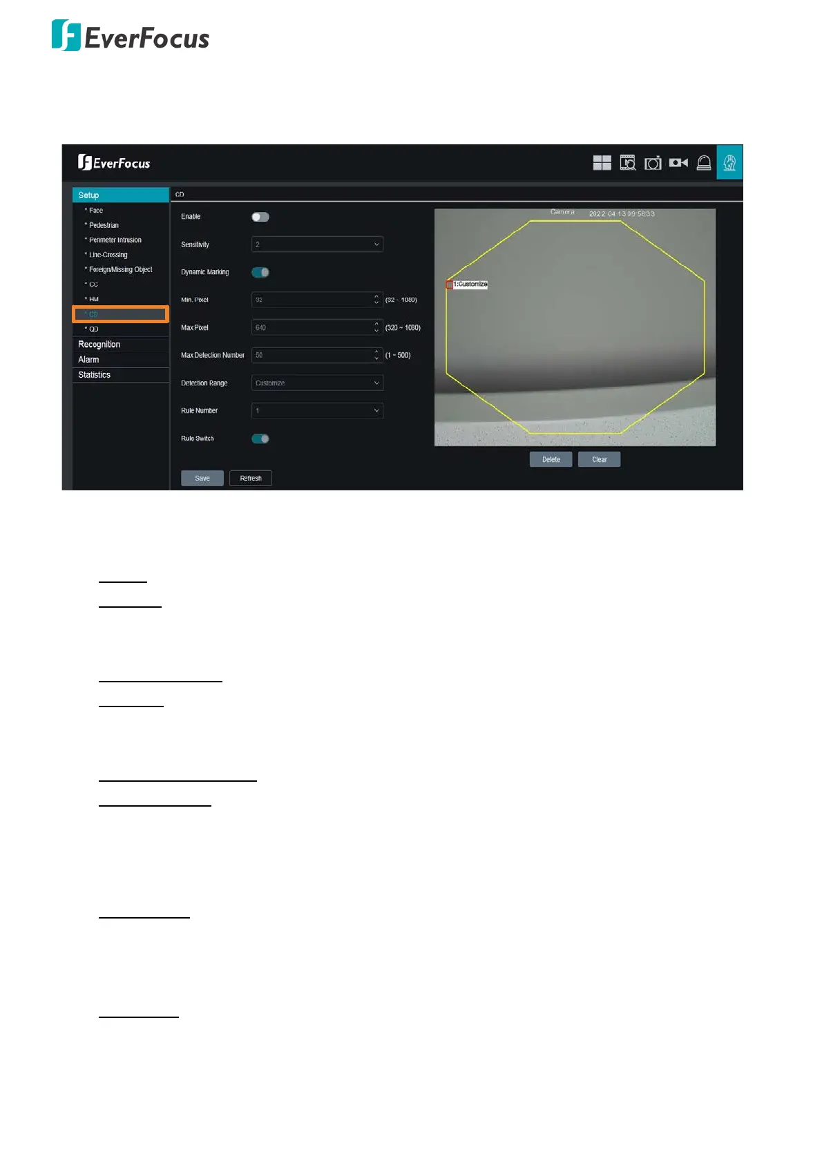 Min Pixel: The lowest pixel setting of human and vehicle. When the recognized object is smaller