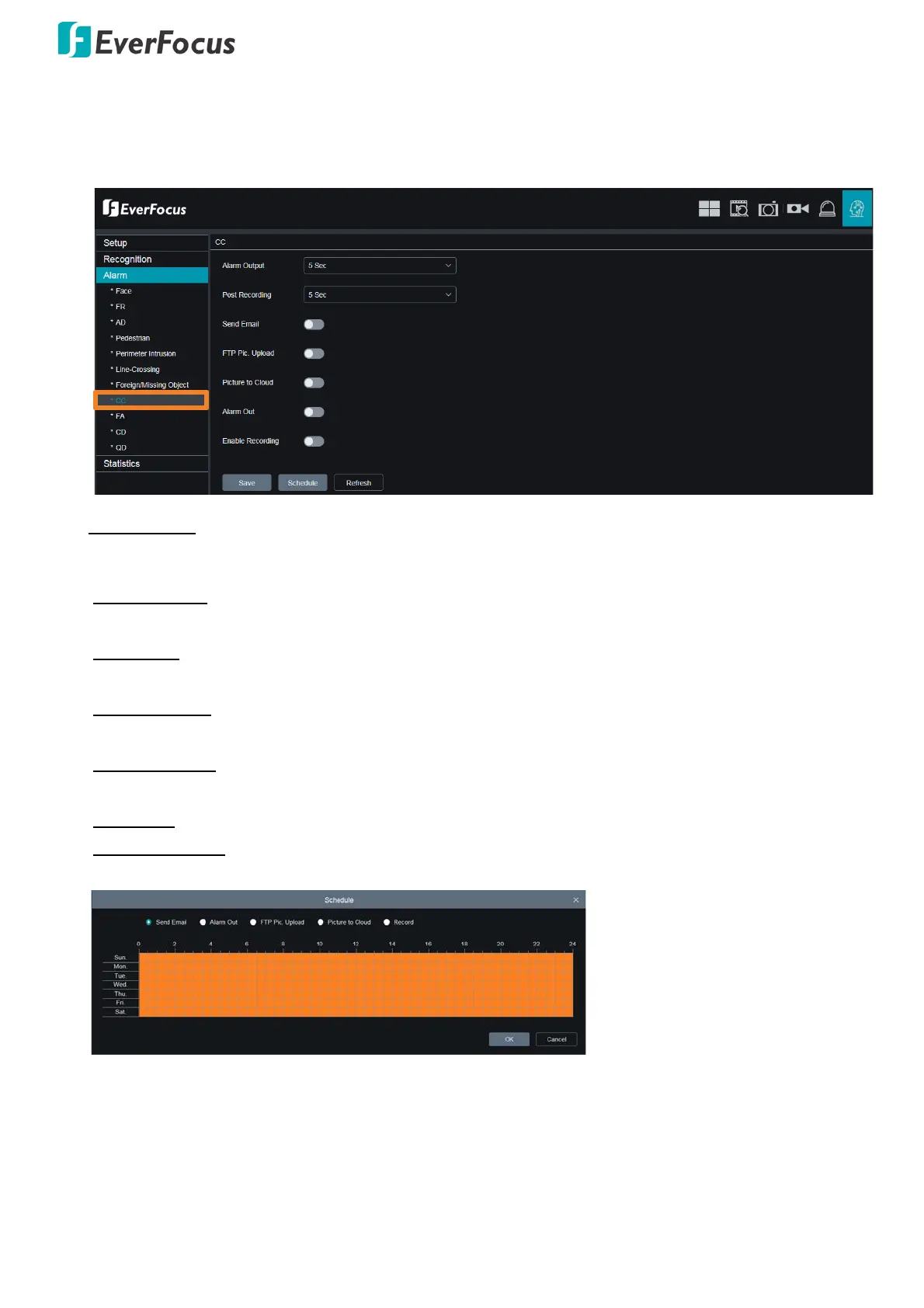 Post Recording: After triggered alarm, the post record time, selected time period is OFF, 5S, 10S,