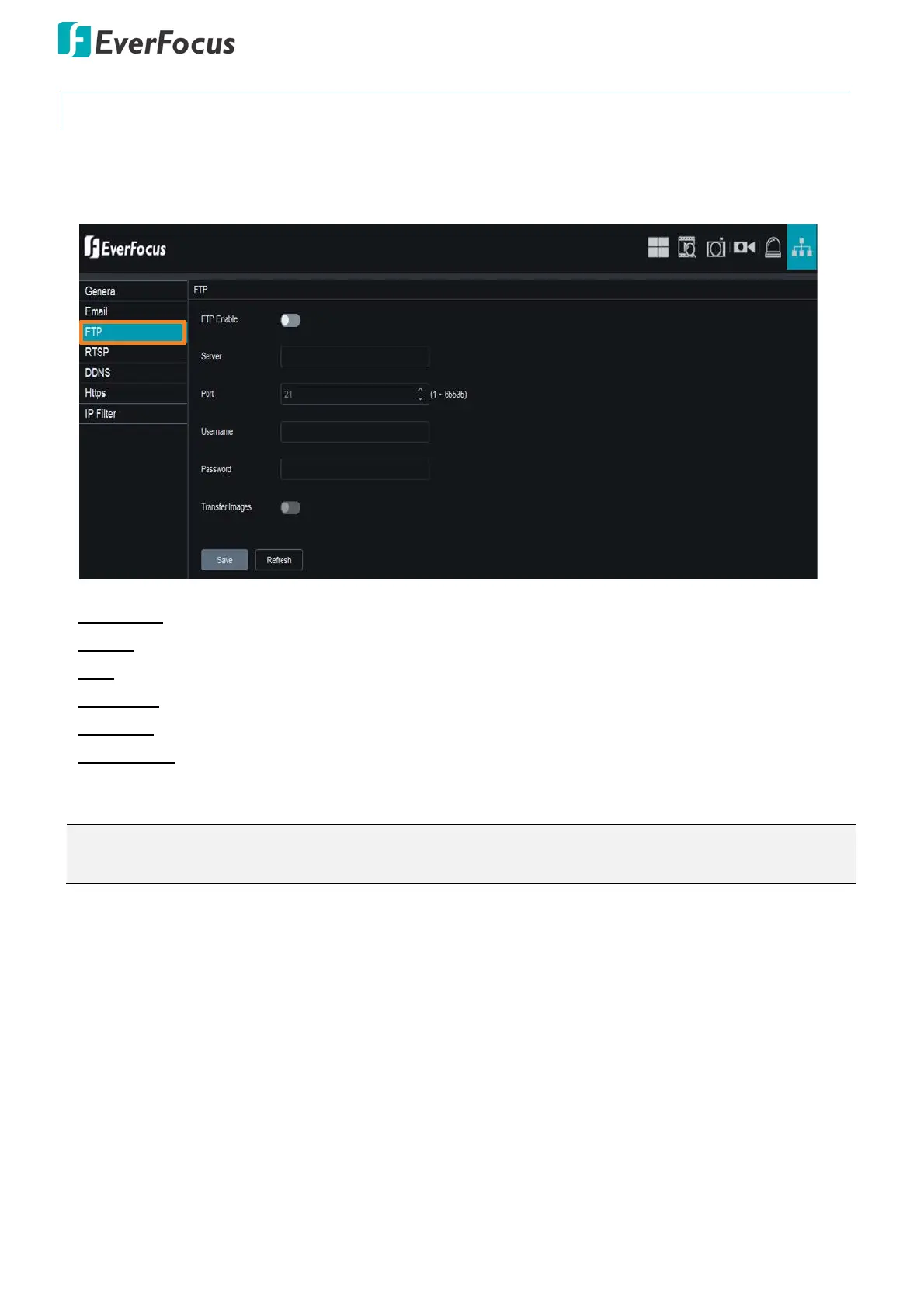 Note: For the FTP function to work, after configuring the FTP settings, you will have to enable the