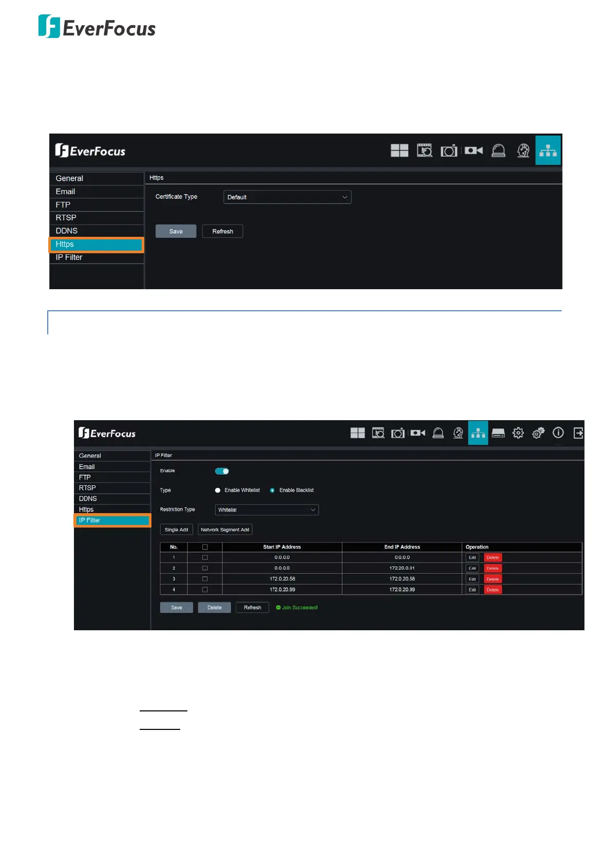 specific IP address to access the IP Camera. By default, all IP addresses are allowed to access the