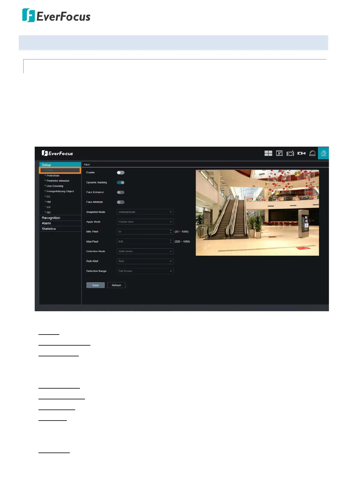 This page can set up Face Detection functions. Note that for Face Detection function to work, a