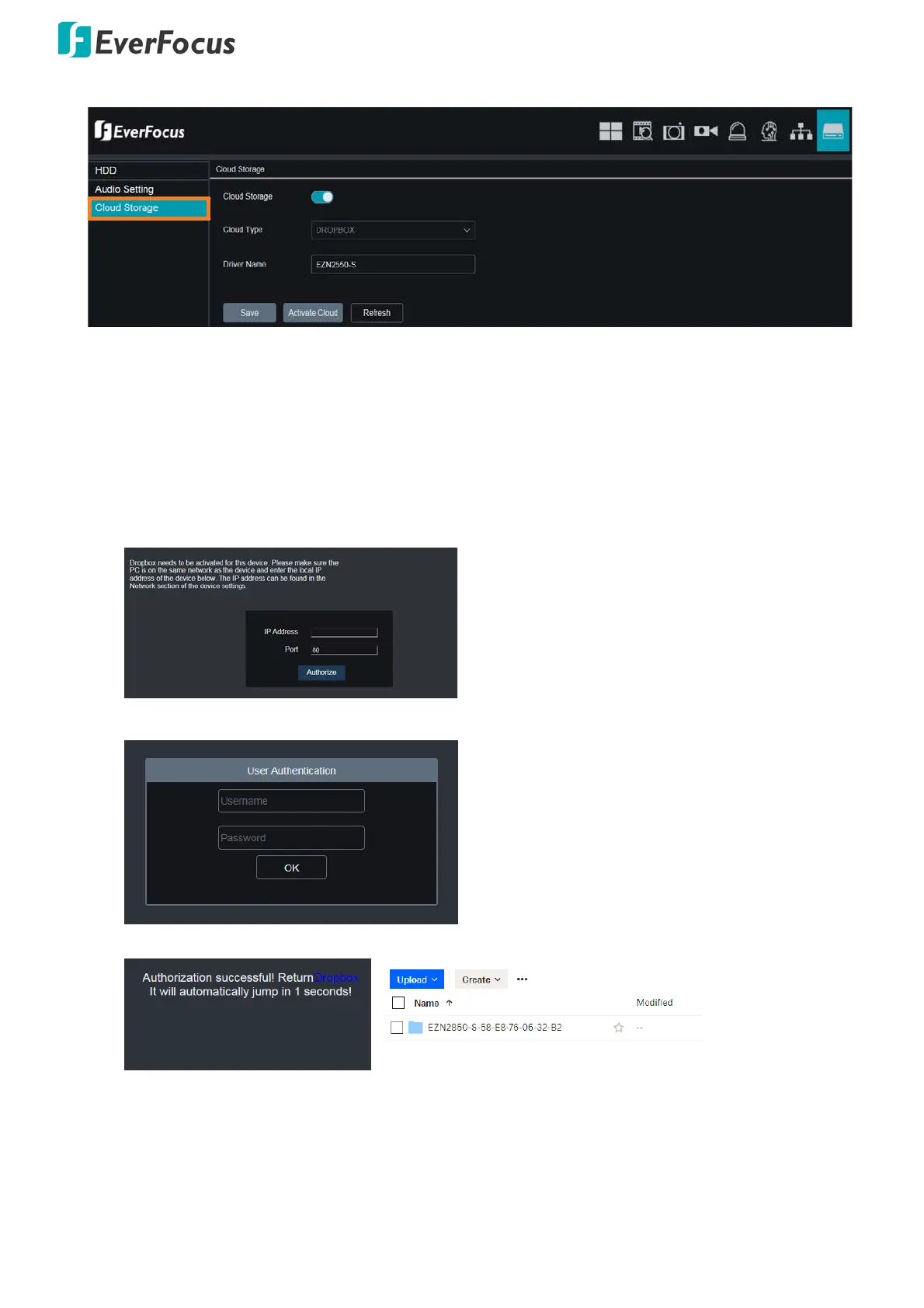 3. Click the Activate Cloud button to activate the Cloud function. The Dropbox website will pup-up on