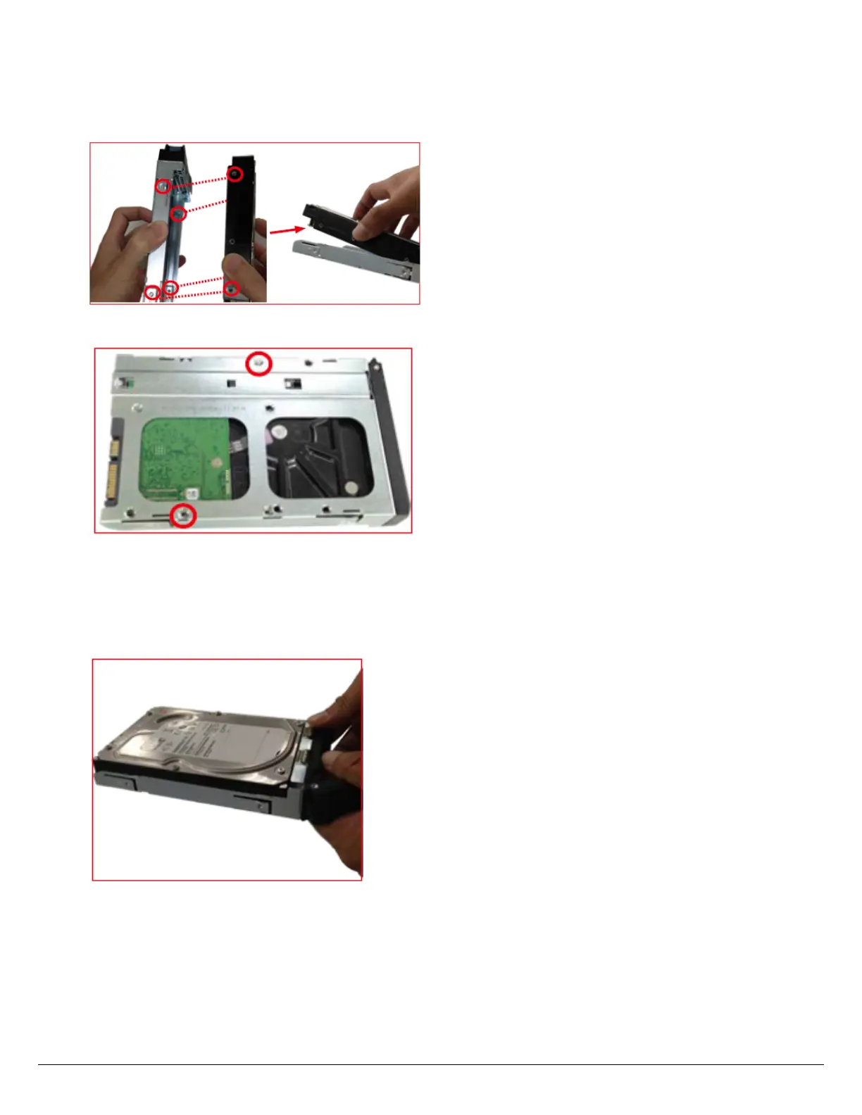 5. Match the dimples on the tray to insert the new HDD into the tray. Pull upward to remove