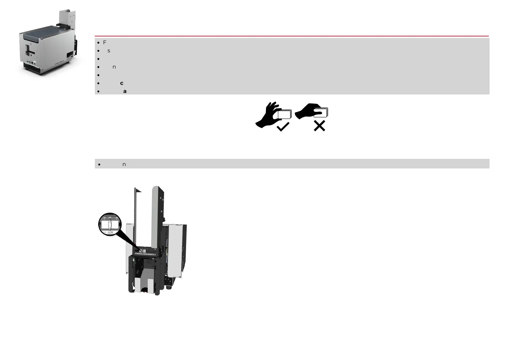 The printer is equipped with a manual card thickness adjustment system, which can be reached at the printer feeder.