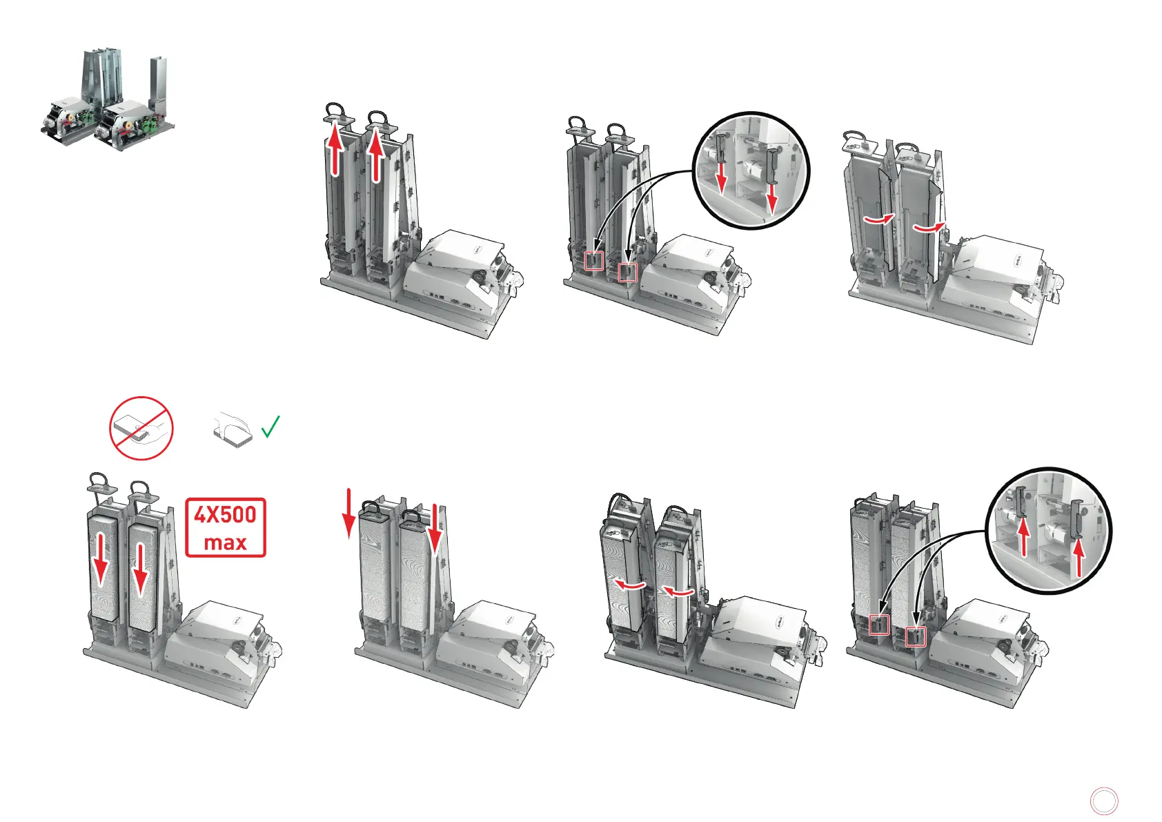 Unlock the latches on each feeder. Then open the doors of the feeders.