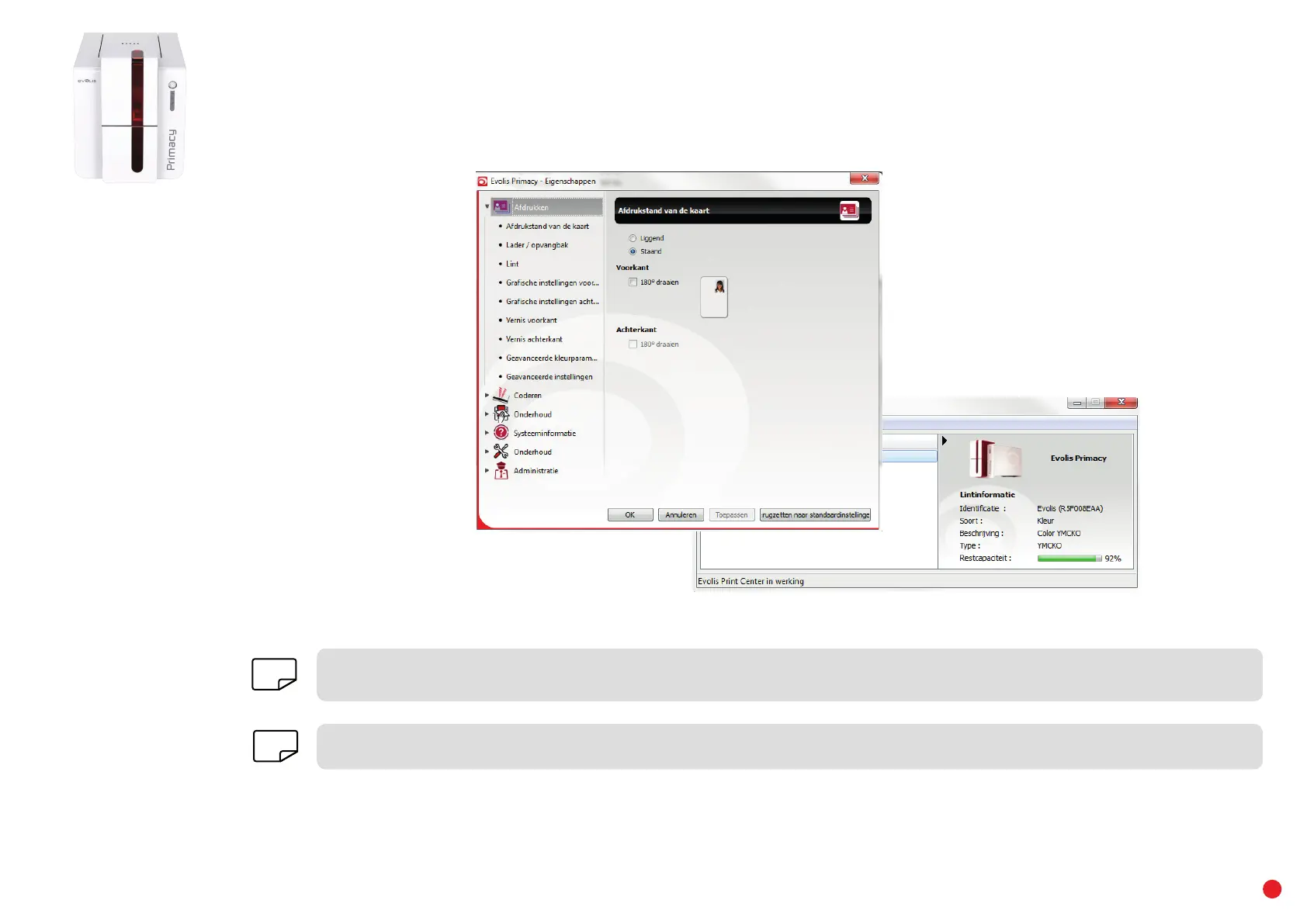 Raadpleeg de Evolis Print Center-handleiding voor meer details over de betekenis van elke instelling.