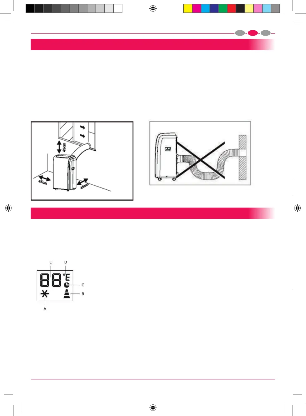 • Maintain a space of at least 45cm between the unit and any walls to allow air to circulate correctly.