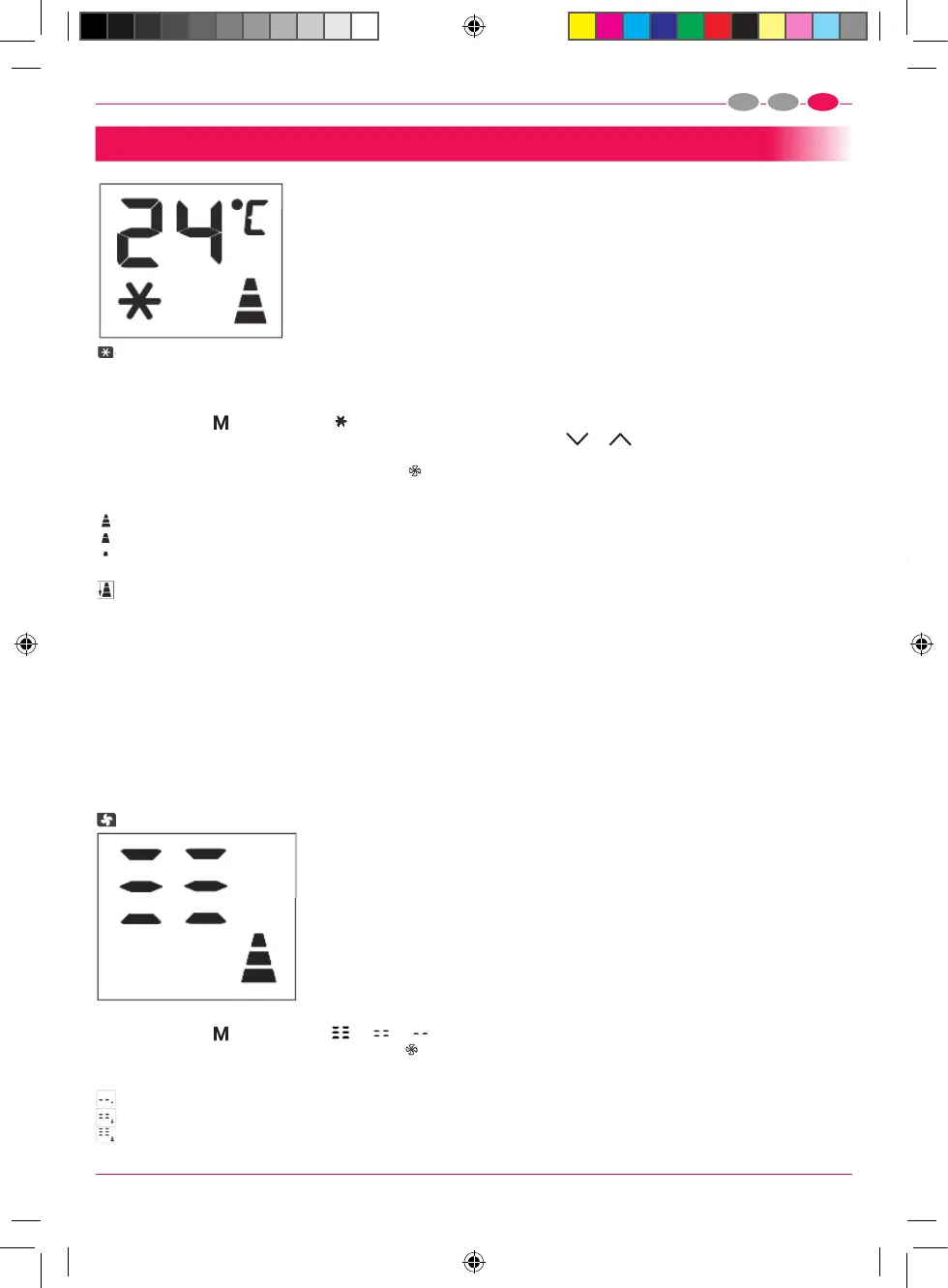 Wanneer de temperatuur in het vertrek 1°C of meer hoger is dan de geselecteerde temperatuur, gaat de ventilatiesnelheid over