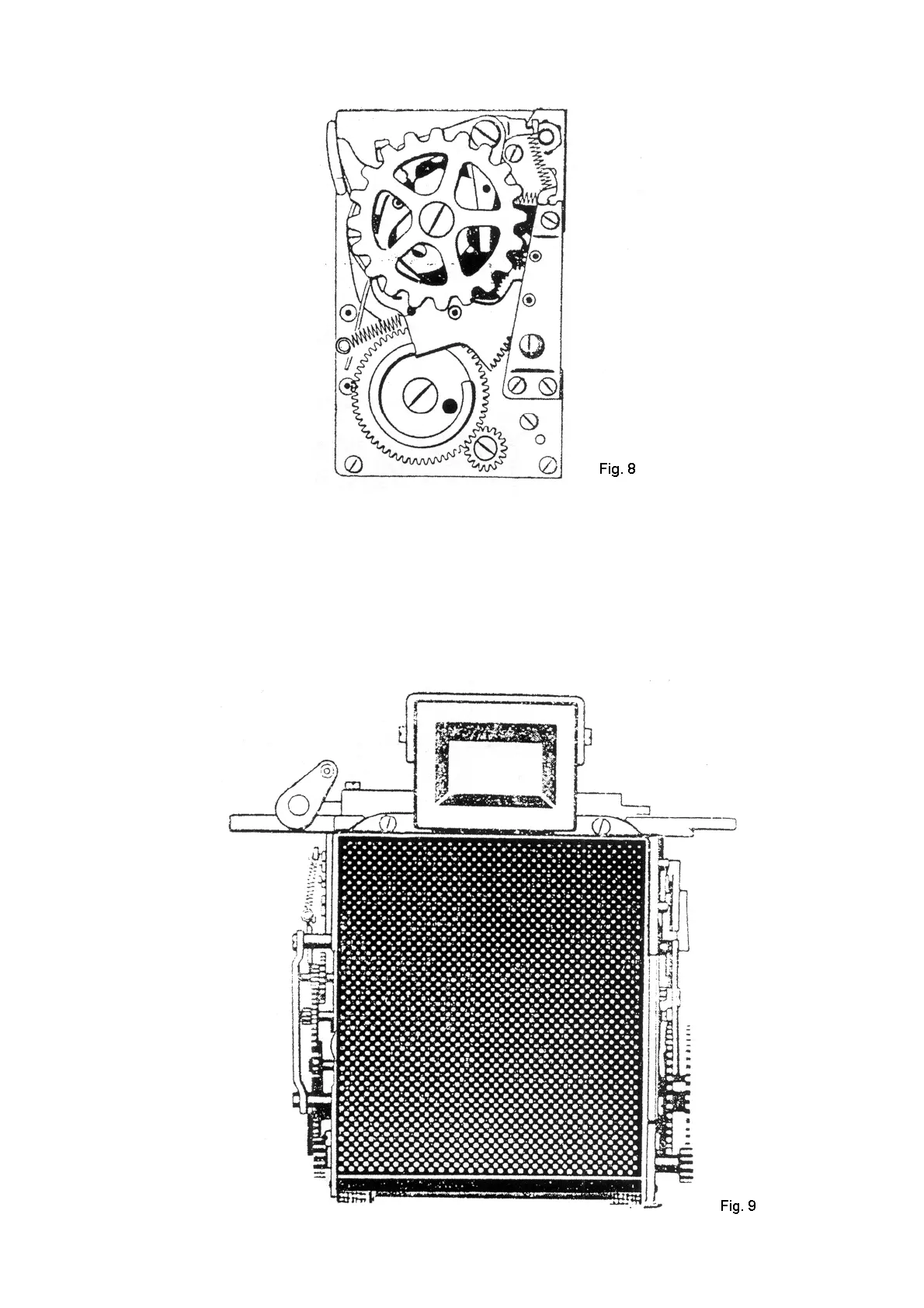 arranged thus appear as in Fig. 9 (shutter cocked) and Fig.10 (leading curtain up). In