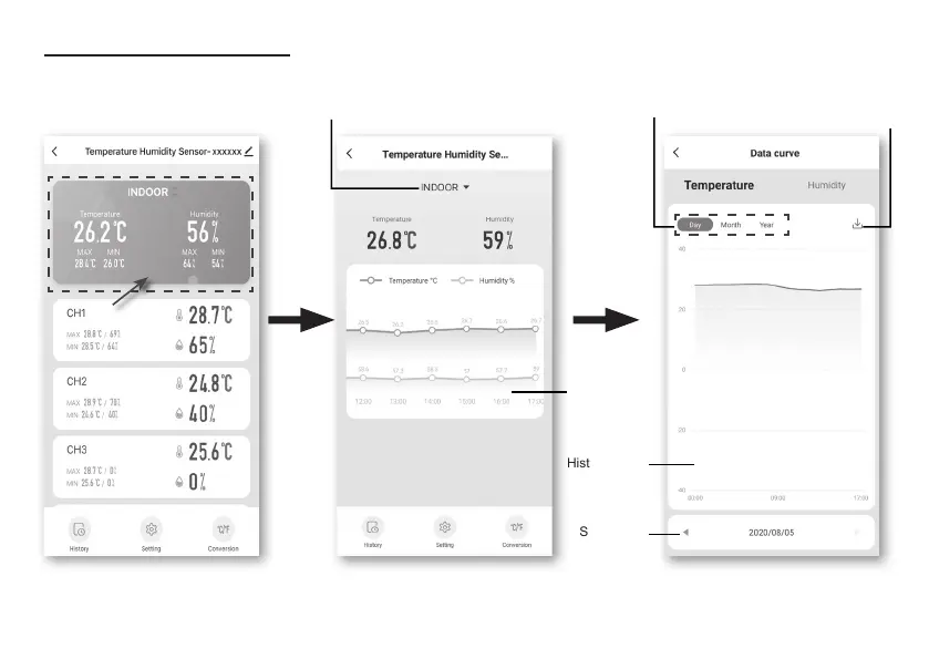 You can view the history graph by tapping the INDOOR or CH region in "device page".