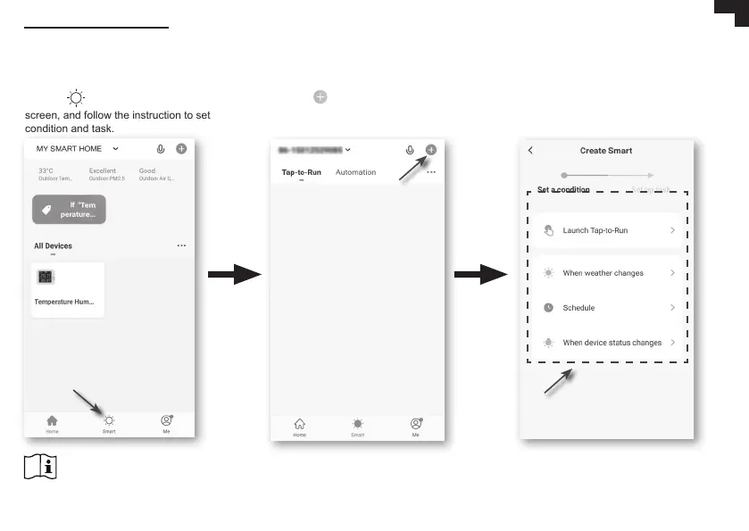 Through the Smart life App, you can create the temperature and humidity trigger conditions to