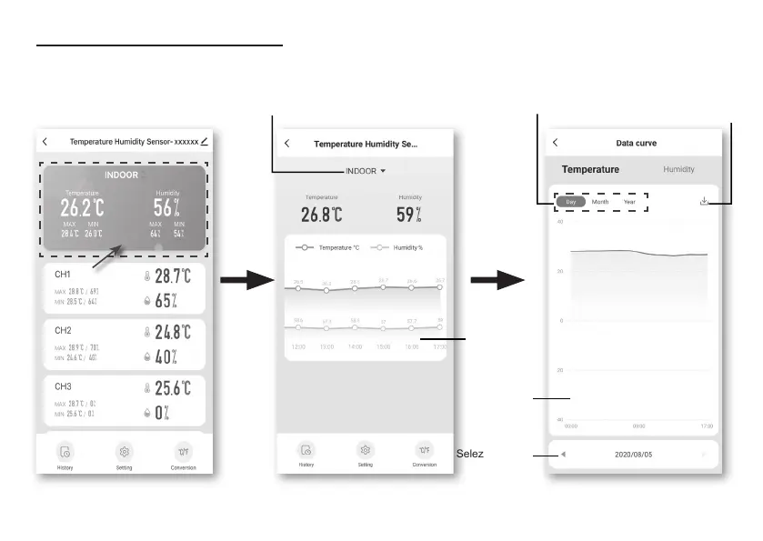 È possibile visualizzare i dati sotto forma di graco toccando l'area INDOOR o CH nella schermata del
