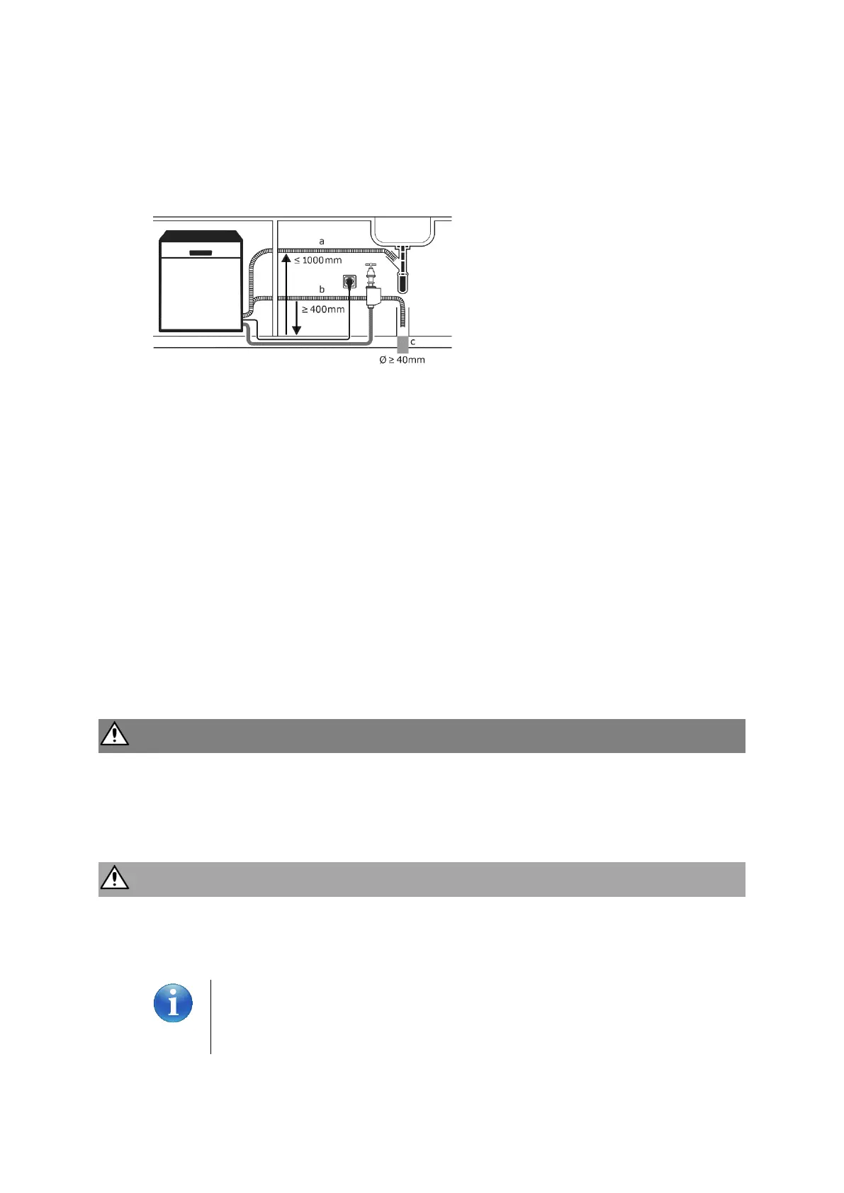 • Als Schlauchverlängerung nur einen baugleichen Ablaufschlauch verwenden und