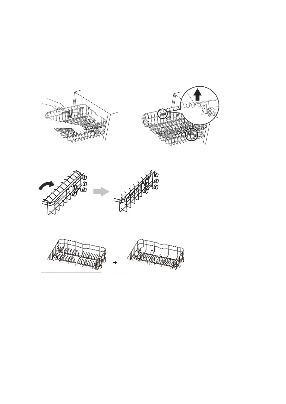 The tips of the shelves are hinged to load larger crockery such as pots and pans.